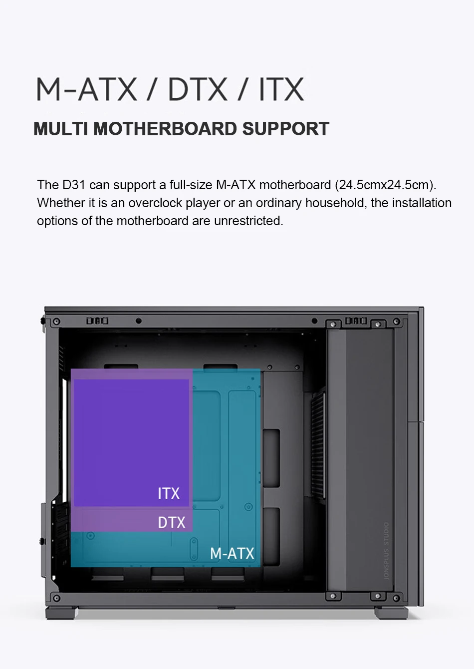 전원 공급 장치 지원: ATX / SFX, 100mm-220mm L max.