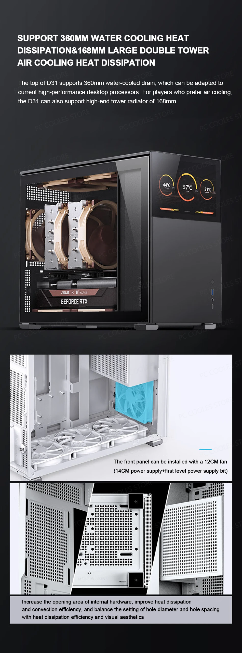팬 장착 위치: 상단 120mm * 3 또는 140mm * 2 후면 120*1mm 하단 120mm * 3 또는 140mm * 2 전면 120mm * 1