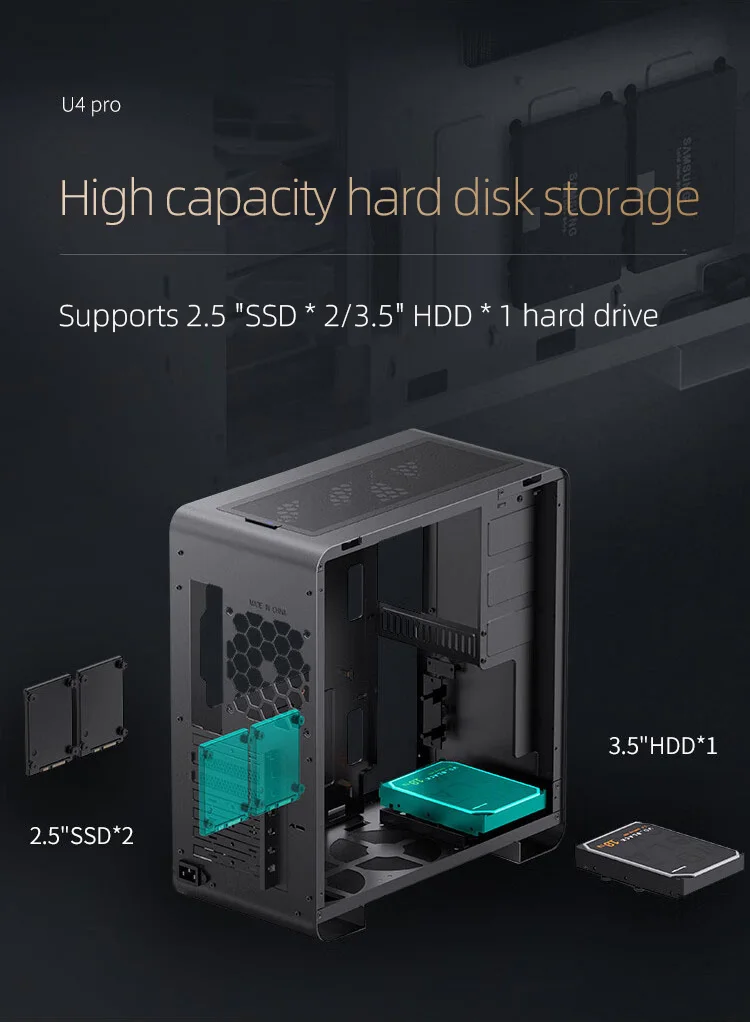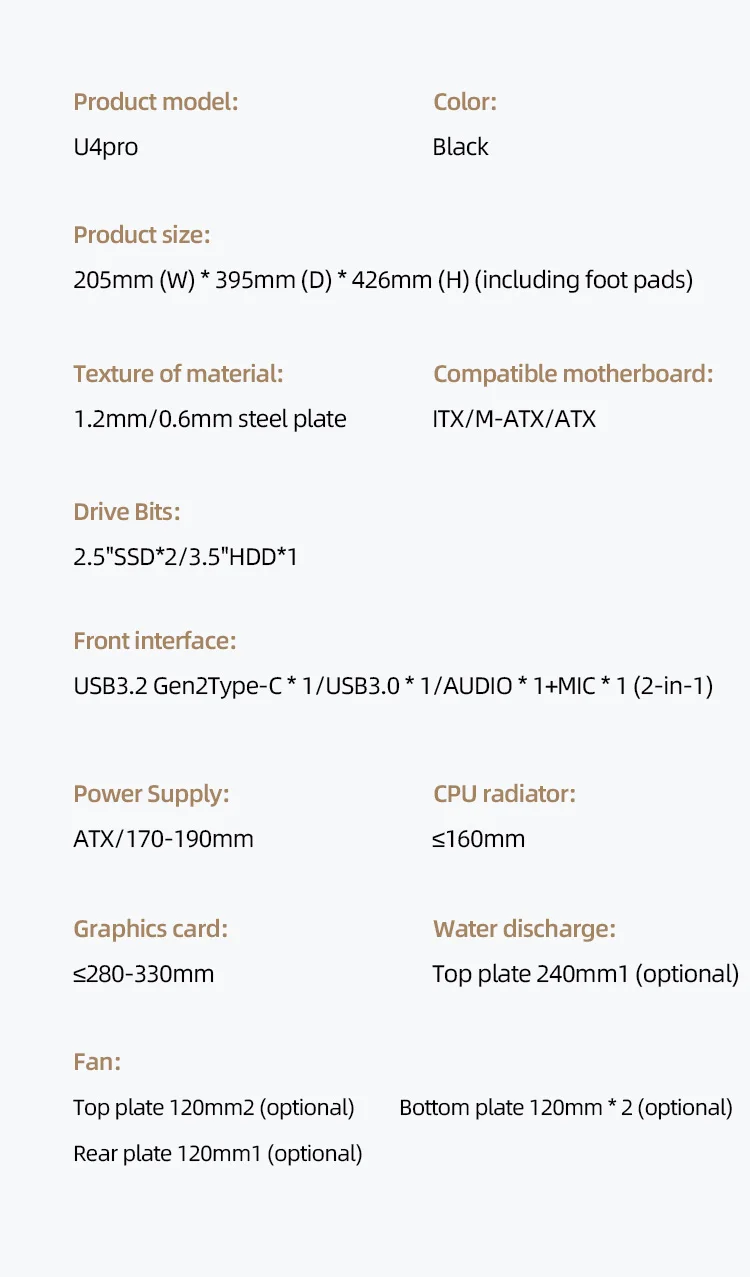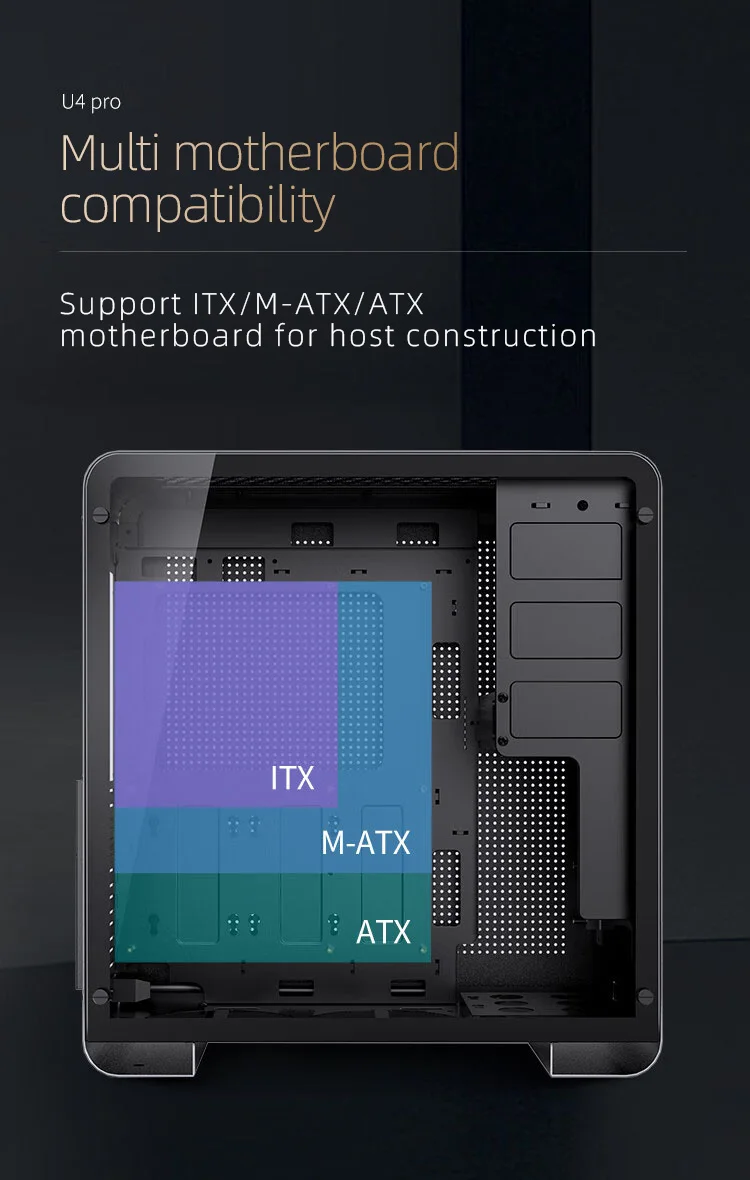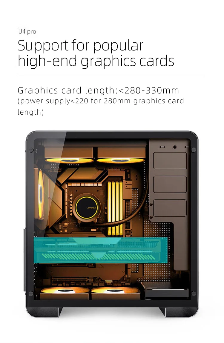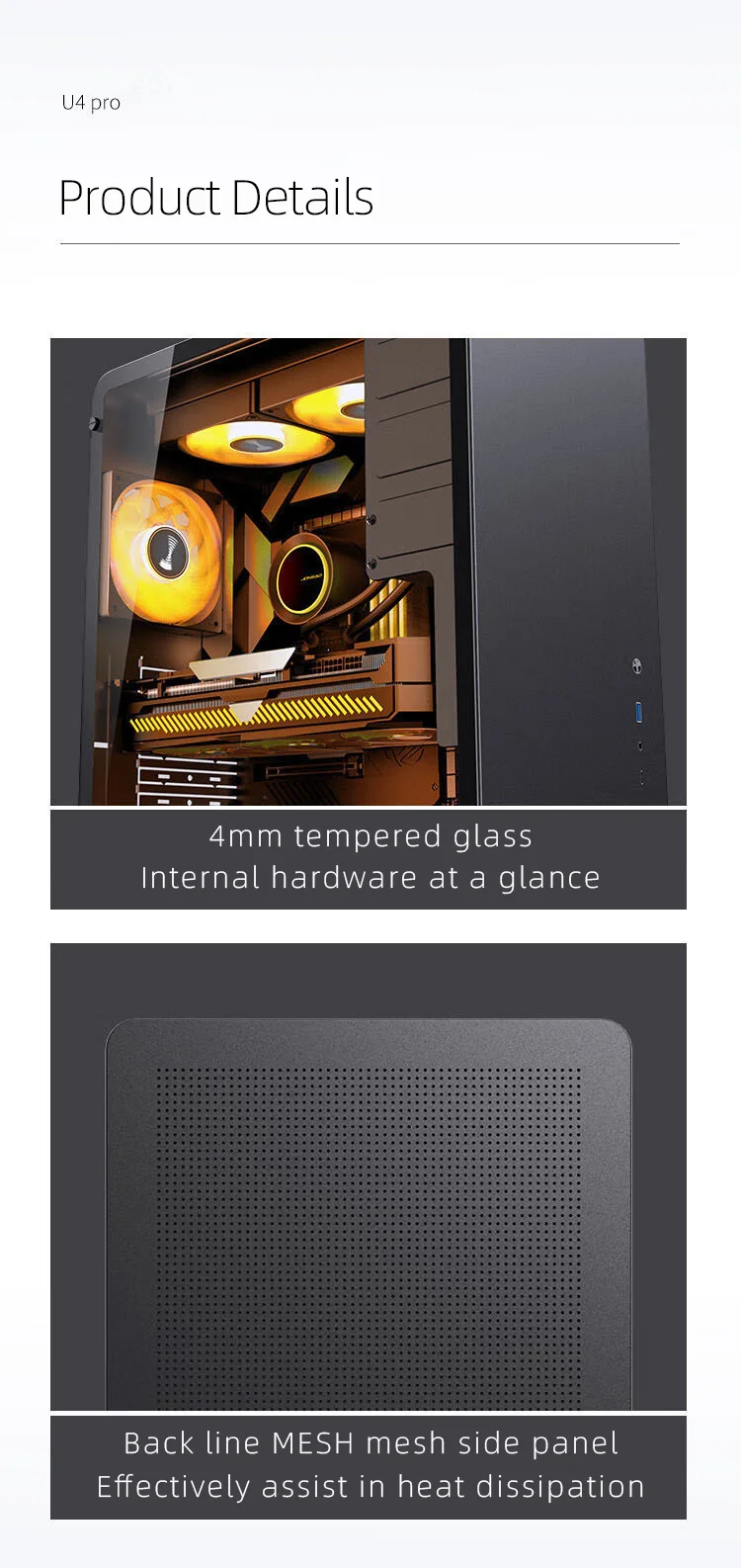 JONSBO U4 Pro MESH ATX 케이스 측면 투명 강화 유리 지원 ATX 전원 160mm 라디에이터 데스크탑 소형 컴퓨터 호스트 섀시