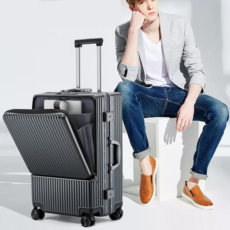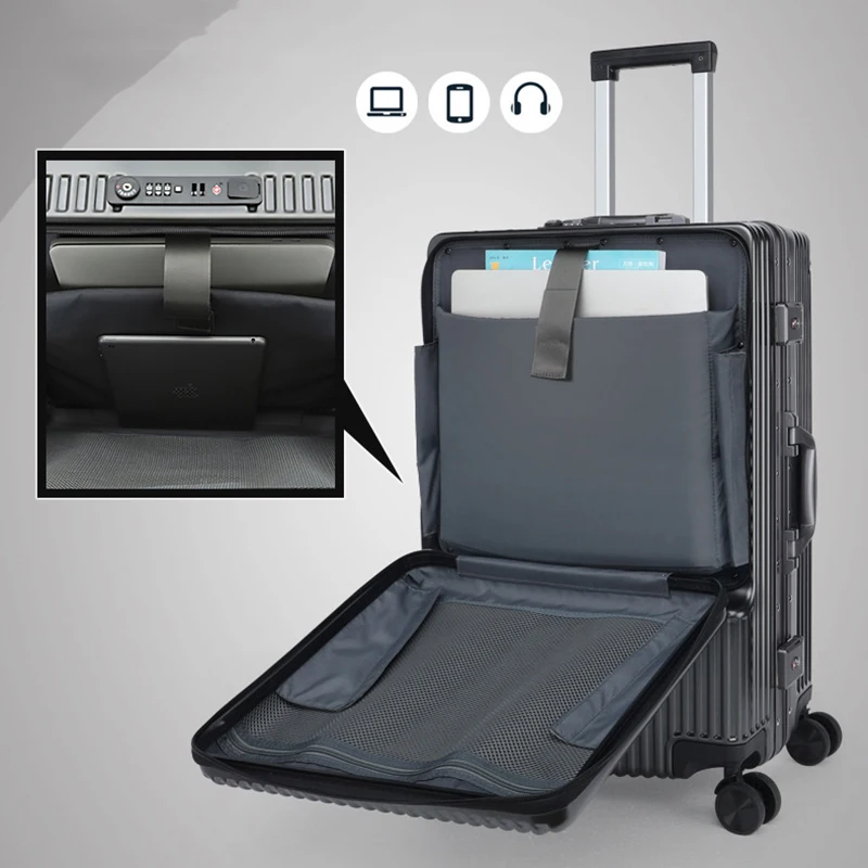 컴퓨터본체 케이스 남녀공용 패셔너블 트롤리 여행 가방 컴퓨터 탑승 수하물 프론트 백 사이드 오픈 풀 로