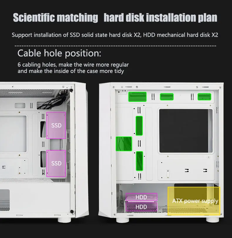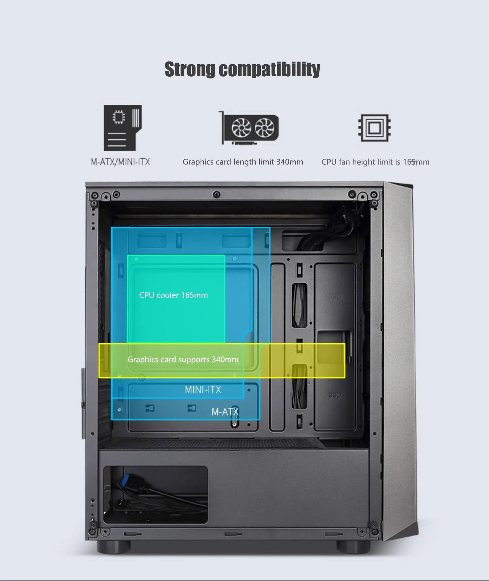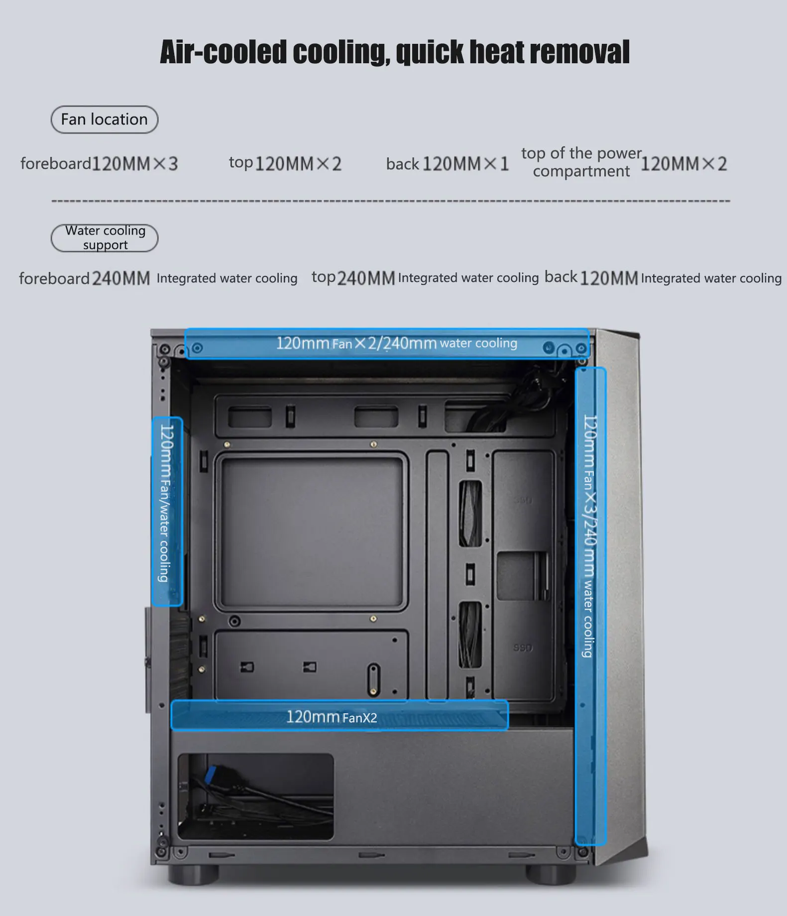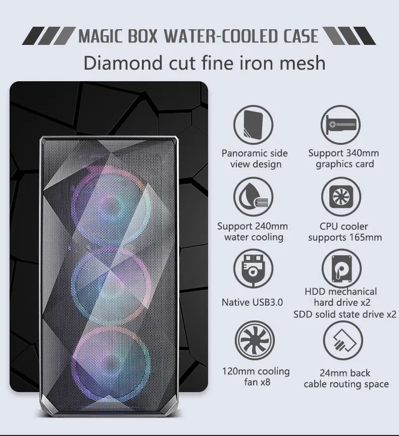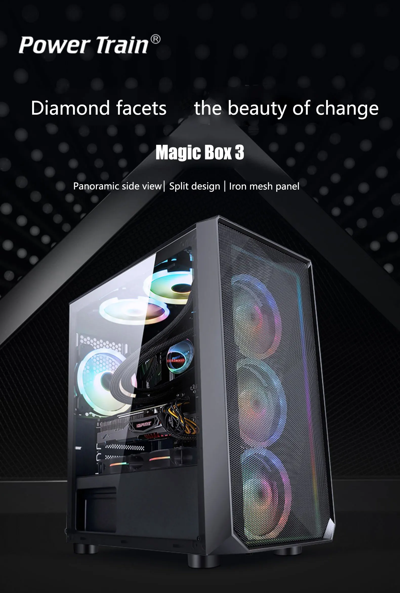 컴퓨터본체 케이스 파워 트레인 매직 박스 ATX 컴퓨터 데스크탑 측면 투명 강화 유리 수냉 냉각 지원 3 분