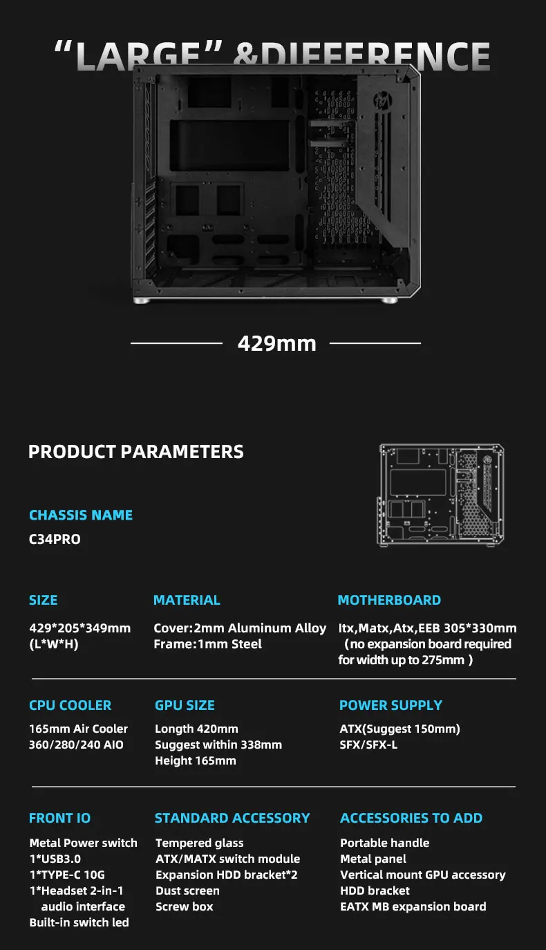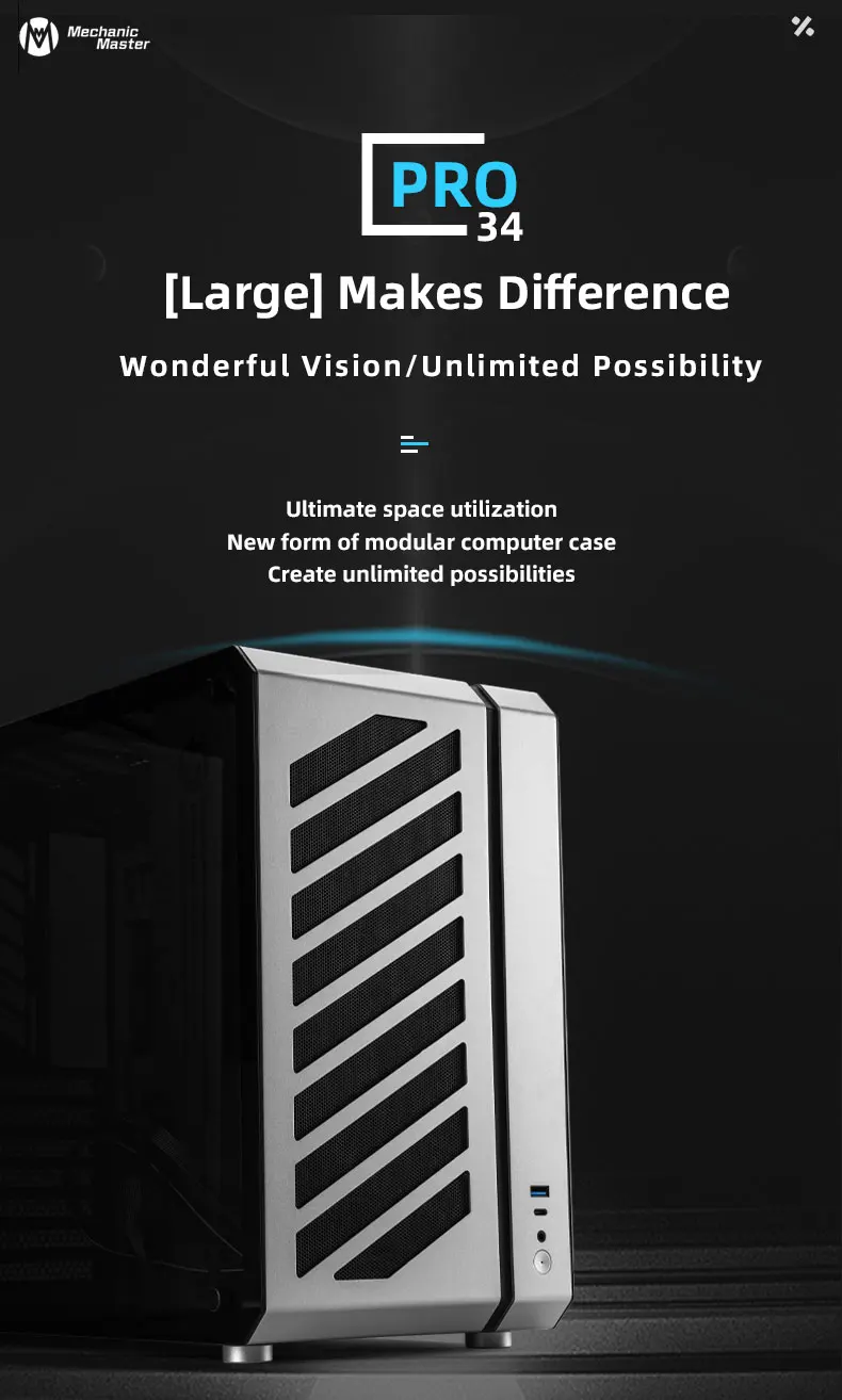 컴퓨터본체 케이스 메카닉 마스터 C34Pro-30.6L EATX 마더보드 및 ATX 전원 165mm 에어 쿨러 또는 360 AIO