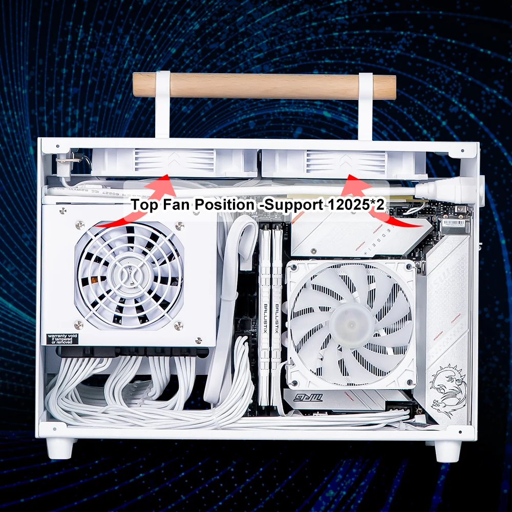 ITX 마더 보드, 308mm 길이의 그래픽 카드, SFX 전원 공급 장치를 지원하고 55mm 높이의 CPU 라디에이터를 지원합니다. (마더 보드, 그래픽 카드, 전원 공급 장치 및 라디에이터는 포함되지 않음)