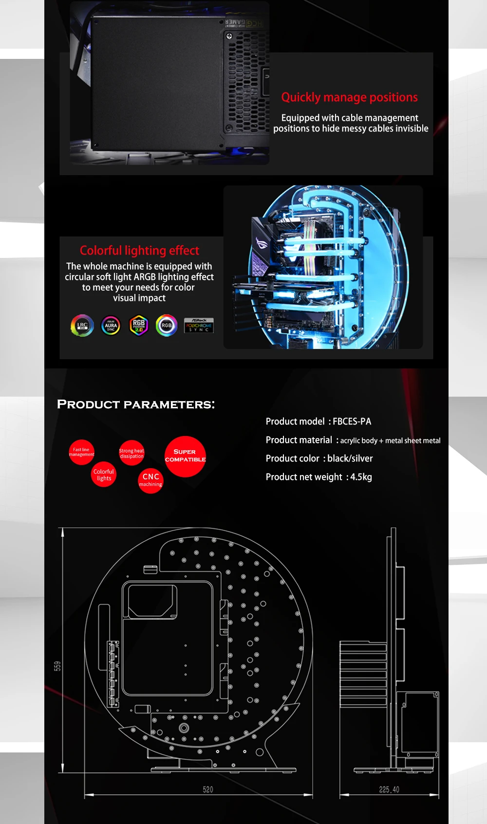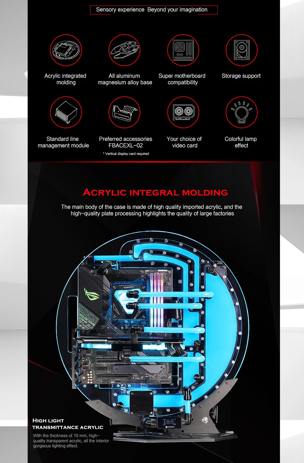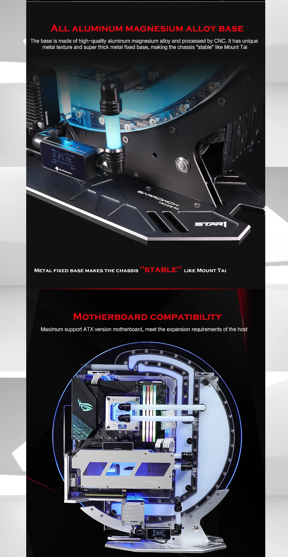 컴퓨터본체 케이스 Barrowch 수냉 게이머 MOD STAR1 시리즈 한정판 독특한 원형 수냉식 섀시 PC DIY FBCES-
