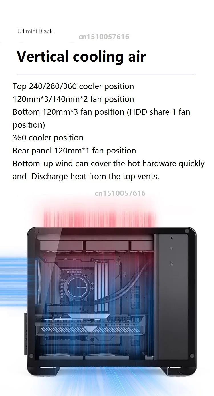 팬 상단 플레이트 120mm * 3 또는 140mm * 2 하단 플레이트 120mm * 3 후면 플레이트 120mm * 1