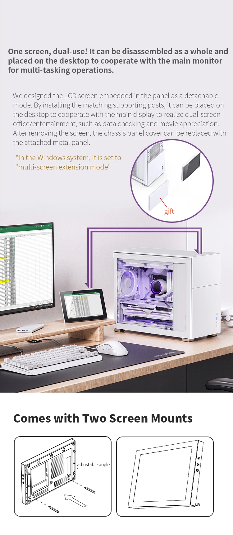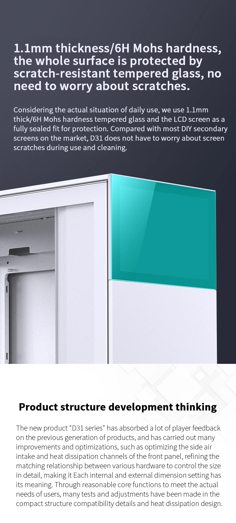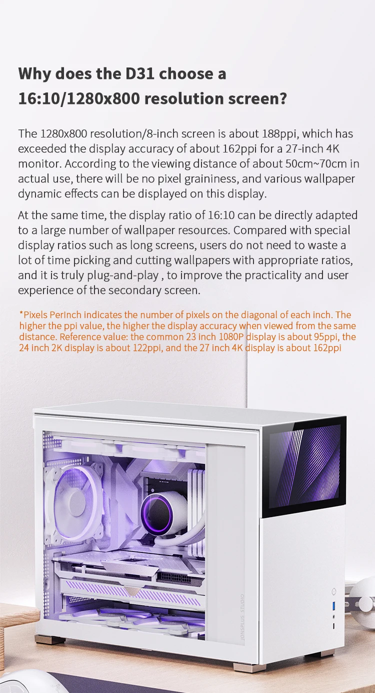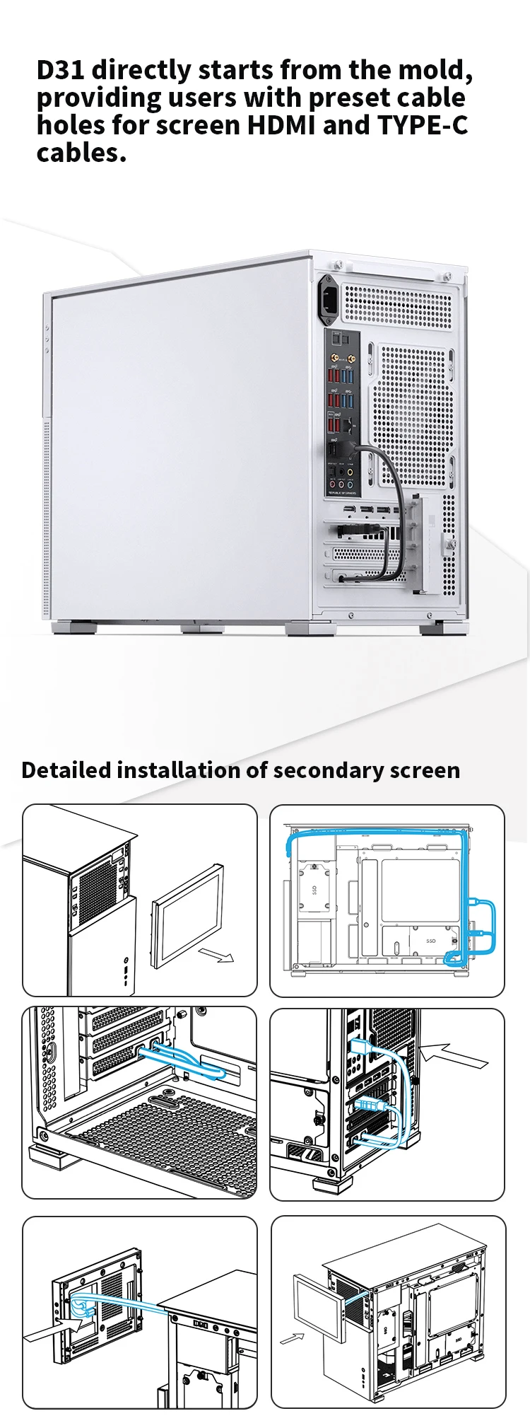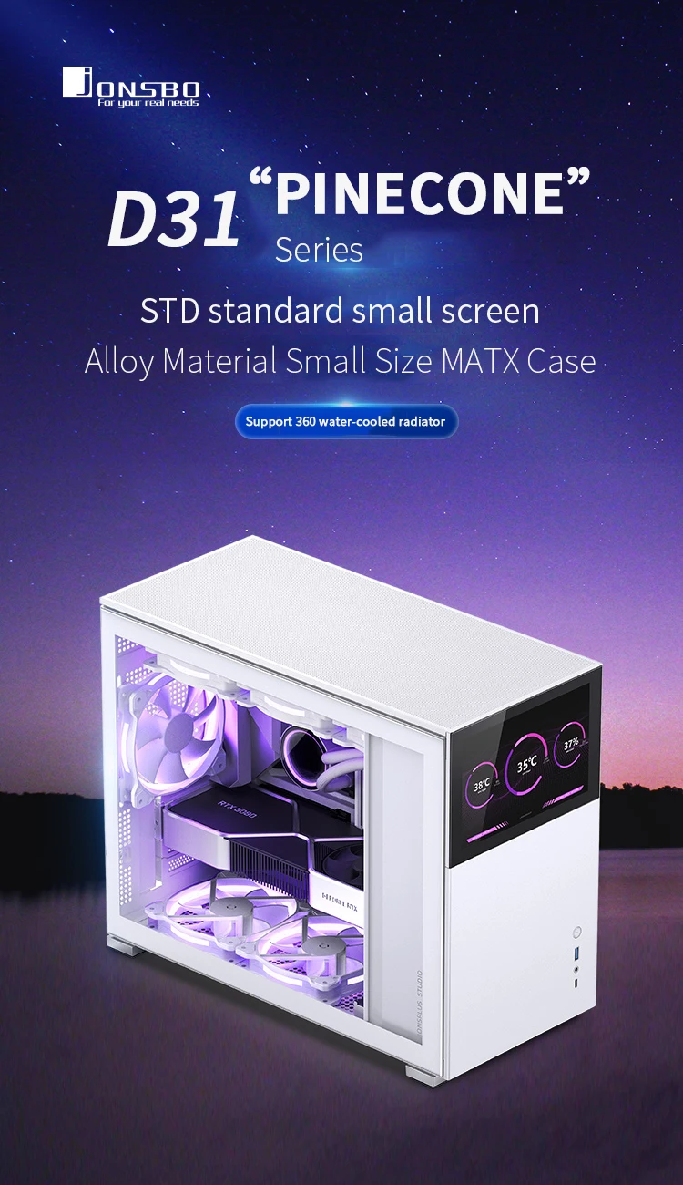 컴퓨터본체 케이스 JONSBO D31 MATX 전면 투명 ITX DTX 컴퓨터 LCD 보조 화면 포함