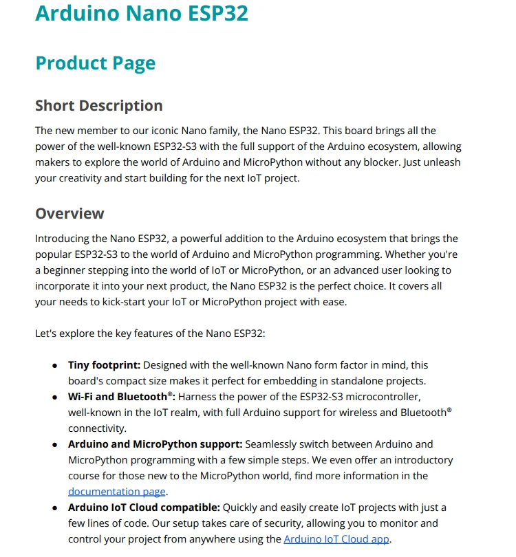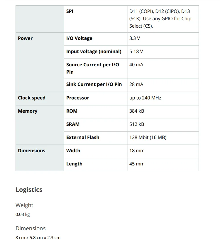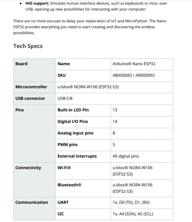 Avada Tech 아두이노 나노 ESP32 헤더 없음 ABX00092