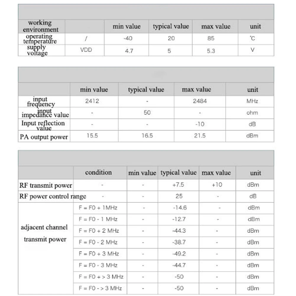 가정용 스마트 장치에 대한 2.4G 안테나와 ESP32 개발 보드 CH340G WiFi 블루투스 호환 모듈 ESP32-CAM 특징: 1. 광범위한 응용 프로그램:이 모듈은 가정용 스마트 장치, 산업용 무선 제어, 무선 모니터링, QR 무선 인식, 무선 포지셔닝 시스템 신호 및 기타 IoT 응용 프로그램에 적합한 다양한 IoT 시나리오에서 널리 사용됩니다. 2. 대용량 메모리 용량:데이터를 저장하거나 응용 프로그램을 실행하기에 충분한 저장 공간을 제공하는 기본 32Mbit SPI 플래시 및 내부 520KB + 외부 4MPSRAM RAM이 제공됩니다. 3. 듀얼 무선 연결:블루투스 호환 4.2 BR/EDR 및 BLE 표준과 Wi-Fi 802.11 b/g/n/e/i를 지원하여 빠르고 안정적인 무선 연결 옵션을 제공합니다. 4. 여러 인터페이스:UART, SPI, I2C, PWM 인터페이스를 지원하여 다른 장치 나 센서에 쉽게 연결할 수 있습니다. 5. 고성능:이 모듈은 최대 4GB 의 TF 카드를 지원하고 9 개의 IO 포트를 제공하므로 사용자에게 사용 시 유연성이 향상됩니다. 802 위해 17 ± 2dBm (@ 1lMbps) 의 고출력으로 전송합니다. 802 대한 l1b, 14 ± 2dBm (@ 54Mbps). l1g, 그리고 802 대해 13 ± 2dBm (@ MCS7). l1n, 데이터를 빠르고 효율적으로 전송합니다. 사양: SPI 플래시: 기본 32Mbit RAM: 내부 520KB + 외부 4MPSRAM 블루투스 호환: 블루투스 호환 4.2 BR/EDR 및 BLE 표준 WiFi: 802 II b/g/n/e/i 지원되는 인터페이스: UART, SPI, I2C, PWM TF 카드 지원: 최대 4G IO 포트: 9 직렬 포트 속도: 기본 115200 bps 이미지 출력 형식: JPEG (OV2640 에서만 지원), BMP, GRAYSCALE 스펙트럼 범위: 2412-2484MHz 안테나 형태: 2dBi 의 이득을 가진 온보드 PCB 안테나 전송 전력: 802. l1b: 17 ± 2dBm (@ 1Mbps) 802.l1g: 14 ± 2dBm (@ 54Mbps) 802.l1n: 13 ± 2dBm (@ MCS7) 제품 크기: 27*48.5*4.5mm/1.06*1.90*0.17 인치 (핀 제외) 참고: