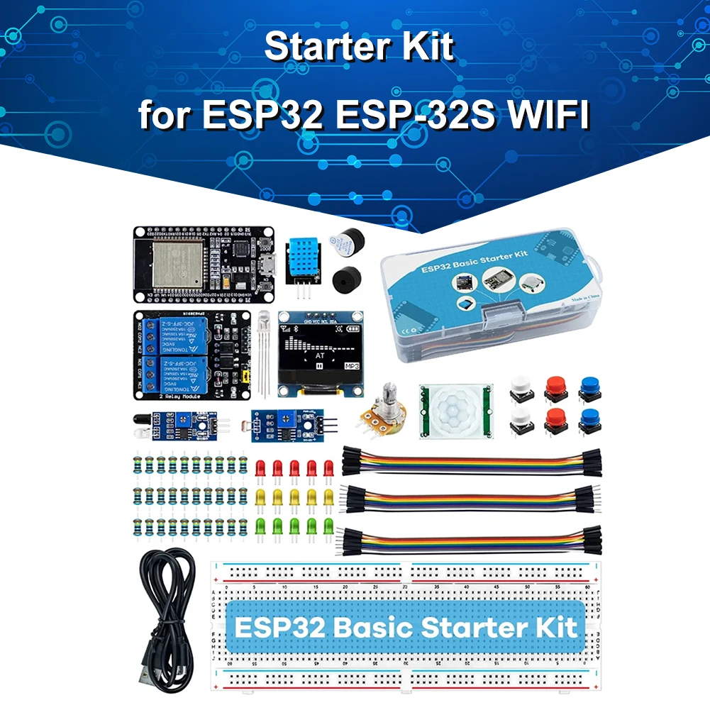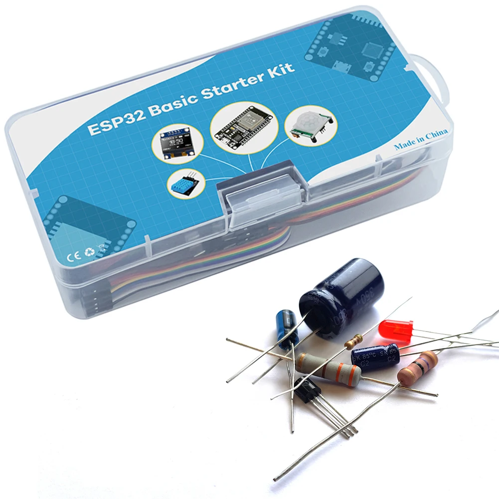 전자 부품 ESP32 ESP-32S WIFI OT 개발 보드 학습 기본 스타터 키트 저장 상자 0.96 인치 올레드 광 저항 모듈 Arduino 용 Pir 모션 센서