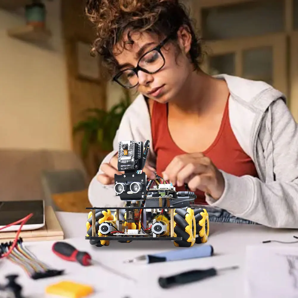ESP32 캠 스마트 로봇 자동차 키트 프로그래밍 코딩 로봇 공학 교육 키트 초음파 장애물 회피 프로그래밍 Arduino를위한 완벽한 교육 학습 키트 라인 WIFI 추적 제어 특징: 1. 다기능:이 스마트 로봇 카 키트는 다양한 이동 옵션, 라인 추적 기능, 장애물 감지 및 팔로잉, 실시간 카메라 이미지 전송 및 편리한 WiFi 제어를 포함한 다양한 기능을 제공합니다. 2. 보통 조립 난이도:회로 납땜이 필요 없고, 단자를 쉽게 연결할 수 있으며, 조립 설명서와 함께 명확하고 효율적인 완성이 가능합니다. 조립 공정은 회로 납땜이 필요 없이 사용자 친화적으로 만들어졌습니다. 4wd 스마트 로봇 카 키트는 쉽게 연결할 수있는 단자를 특징으로하며 부드럽고 효율적인 조립 경험을 보장하기 위해 포괄적 인 조립 매뉴얼이 제공됩니다. 3. 높은 강도와 확장 성:내구성을 염두에두고 설계된 스마트 로봇 카 스타터 키트는 견고한 소재 브래킷, 강화 된 베이스 플레이트 및 고품질 무 방향 휠을 특징으로합니다. 또한 추가 센서 및 모듈을 연결하기 위한 충분한 인터페이스를 제공하여 추가 사용자 정의 및 확장을 허용합니다. 4. DIY에 이상적:개인화 및 개선을 장려하여 사용자가 선호도에 따라 기능 및 디자인 모양을 추가하여 창의성과 상상력을 키울 수 있습니다. DIY에 중점을 두어 사용자가 자신의 취향에 따라 로봇을 사용자 정의하고 개선하도록 권장합니다. 새로운 기능을 추가하거나 독특한 외관을 디자인하든, 이 프로그래밍 가능한 DIY 스타터 키트는 사용자가 창의력과 상상력을 발휘할 수 있도록 지원합니다. 5. 혁신적인 기능:C 언어로 작성된 Arduino 코드를 활용하고 Esp32 캠 모듈을 Arduino 용과 통합함으로써이 제품은 다기능 WiFi 제어를 가능하게합니다. 사용자는 로봇의 혁신적인 기능을 활용하여 무선으로 로봇을 쉽게 작동 및 제어할 수 있습니다. 사양: 원산지: 중국 본토 유형: 논리 IC 조건: 신규 신청서: 전기 장난감 모델 번호: 스마트 로봇 자동차 키트 기능: 카메라 기능, 초음파 장애물 회피, 추적 기능, WIFI 제어 특징: 메인 컨트롤 보드, 경량 구조, 메카 넘 휠 다 방향 운동 무게: 970g 크기: 282x163x7 1MM/11.1x6.42x2.8inch 참고: 이 제품에는 기본적으로 배터리가 제공되지 않습니다. 배터리가 필요하면 직접 구입하십시오. 적용 가능한 배터리 모델: 18650 참고: