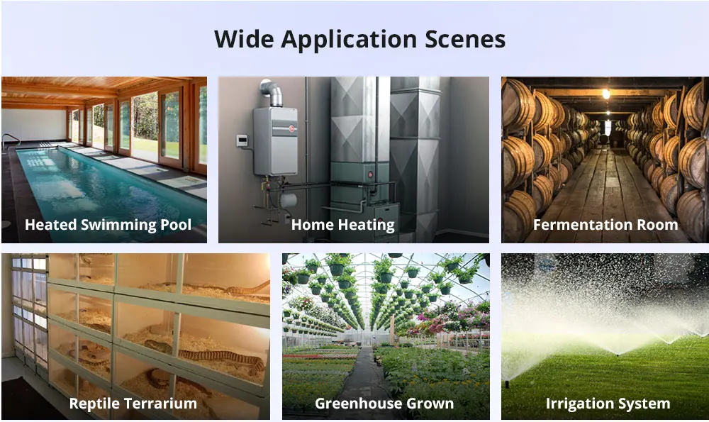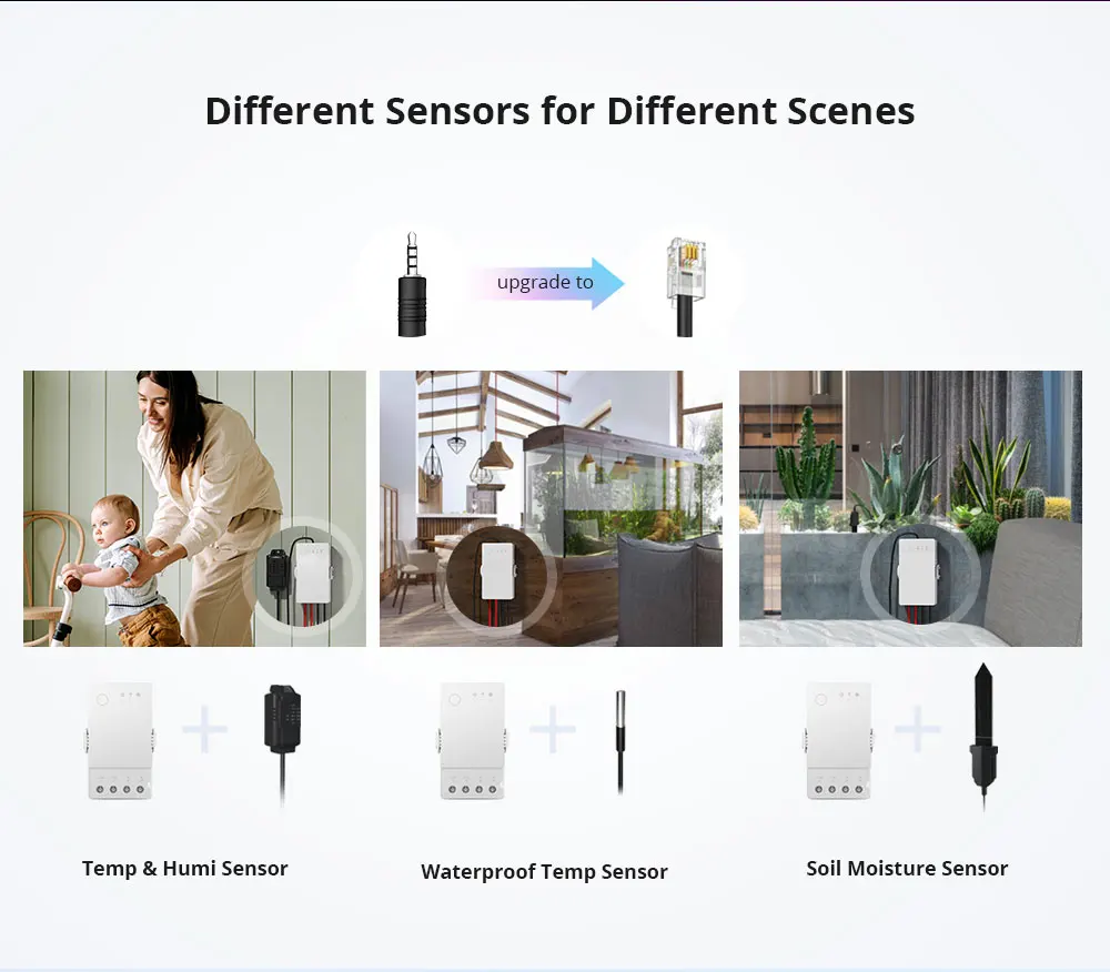 SONOFF TH Origin은 온도 및 Humi 센서, DS18B20 방수 온도 센서 및 MS01 토양 수분 센서를 sensors-THS01 세 종류의 온도 모니터 및 습도 모니터를 지원합니다. 센서 커넥터는 RJ9 4P4C 로 업그레이드되어 핫 플러깅을 지원하여 보다 안정적이고 안정적인 연결을 제공합니다. 따라서 TH Origin에는 온수 수영장, 관개 시스템, 발효 실, 파충류 테라리움, 온실 재배 등과 같은 광범위한 적용 장면이 있습니다.