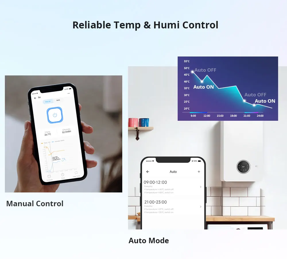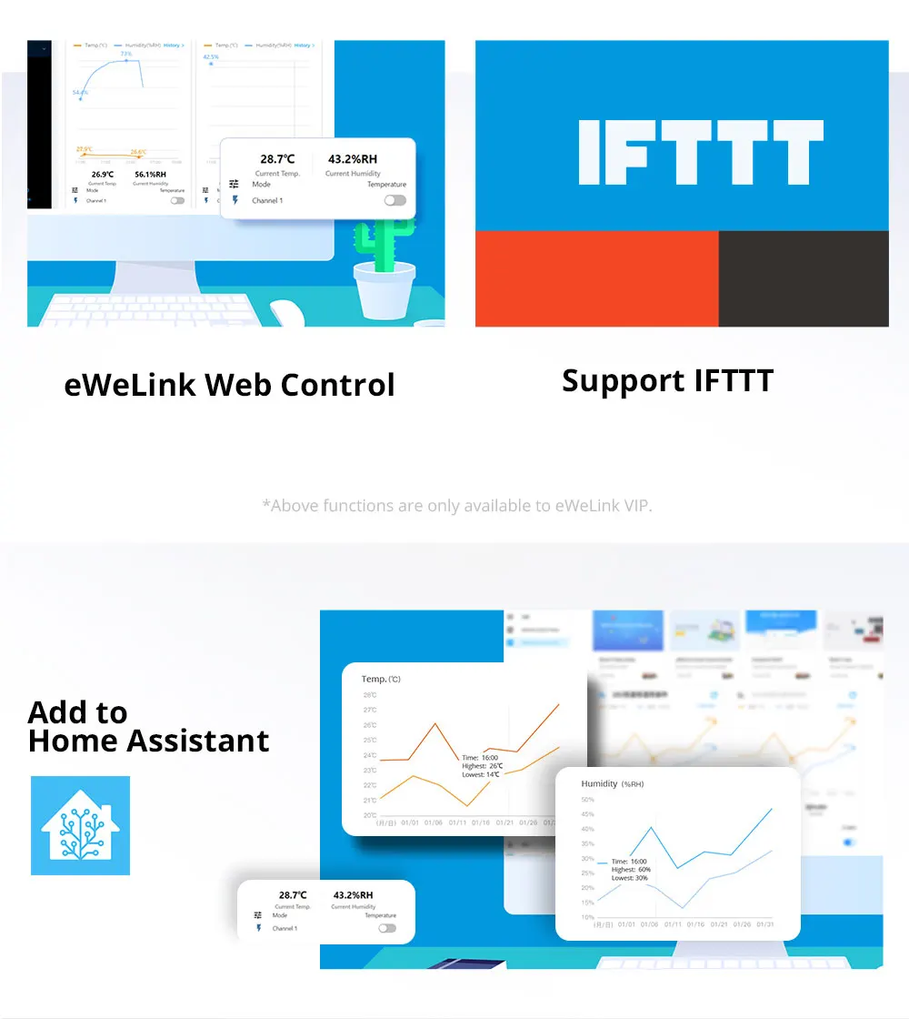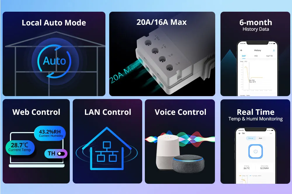 SONOFF TH Origin (TH10/TH16 의 업그레이드 버전) 은 ESP32 칩이 장착 된 스마트 온도 및 습도 모니터링 스위치로 온도 및 습도를 실시간으로 모니터링합니다. 사전 설정된 임계 값에 도달하거나 기기의 켜기/끄기 상태가 변경되면 휴대 전화에서 푸시 알림을 받게됩니다. SONOFF TH Origin은 20A/16A 최대로드를 지원하며 더 많은 가전 제품과 호환됩니다. TH Origin은 시간에 정확한 6 개월 온도 및 Humi 기록 데이터를 확인합니다. 스마트 장면에서 온도, 습도, 켜기, 끄기 지원 설정을 트리거로, 켜기, 끄기, 실행 동작으로 반전시킵니다. EWeLink 애드온을 통한 제어 및 자동화를 위해 홈 어시스턴트에 SONOFF 장치 추가를 지원합니다.