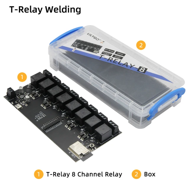 LILYGO® T-Relay에는 8 채널 릴레이 (광 커플러 지원) 및 ESP32 (WIFI Bluetooth 지원) 가 장착되어 있으며 각 릴레이에는 개별 표시기와 빨간색 사용자 정의 표시기가 장착되어 있습니다.