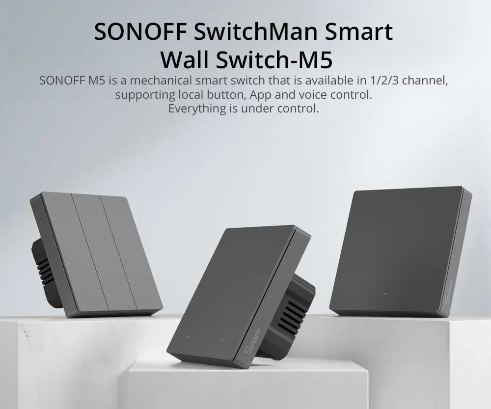 SONOFF SwitchMan M5 는 로컬 버튼, 앱 및 음성 제어를 지원하는 1/2/3 채널에서 사용할 수있는 기계식 스마트 스위치입니다.
