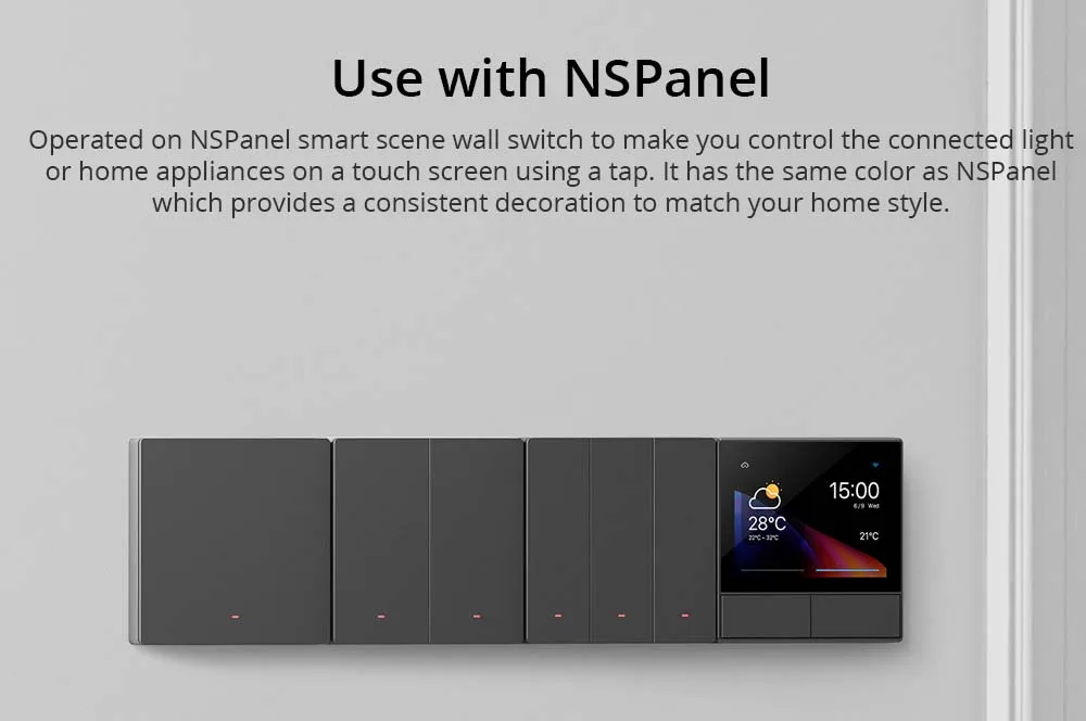 게다가, 수술 NS패널탭을 사용하여 터치 스크린에서 연결된 조명 또는 가전 제품을 제어 할 수있는 스마트 장면 벽 스위치, NSPanel과 동일한 색상으로 가정 스타일에 맞는 일관된 장식을 제공합니다.