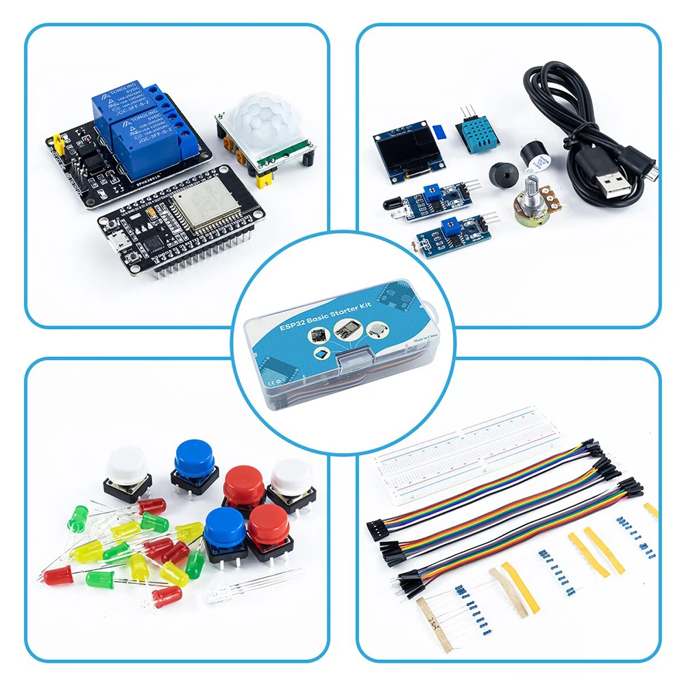 전자 부품 ESP32 ESP-32S WIFI OT 개발 보드 학습 기본 스타터 키트 저장 상자 0.96 인치 올레드 광 저항 모듈 Arduino 용 Pir 모션 센서