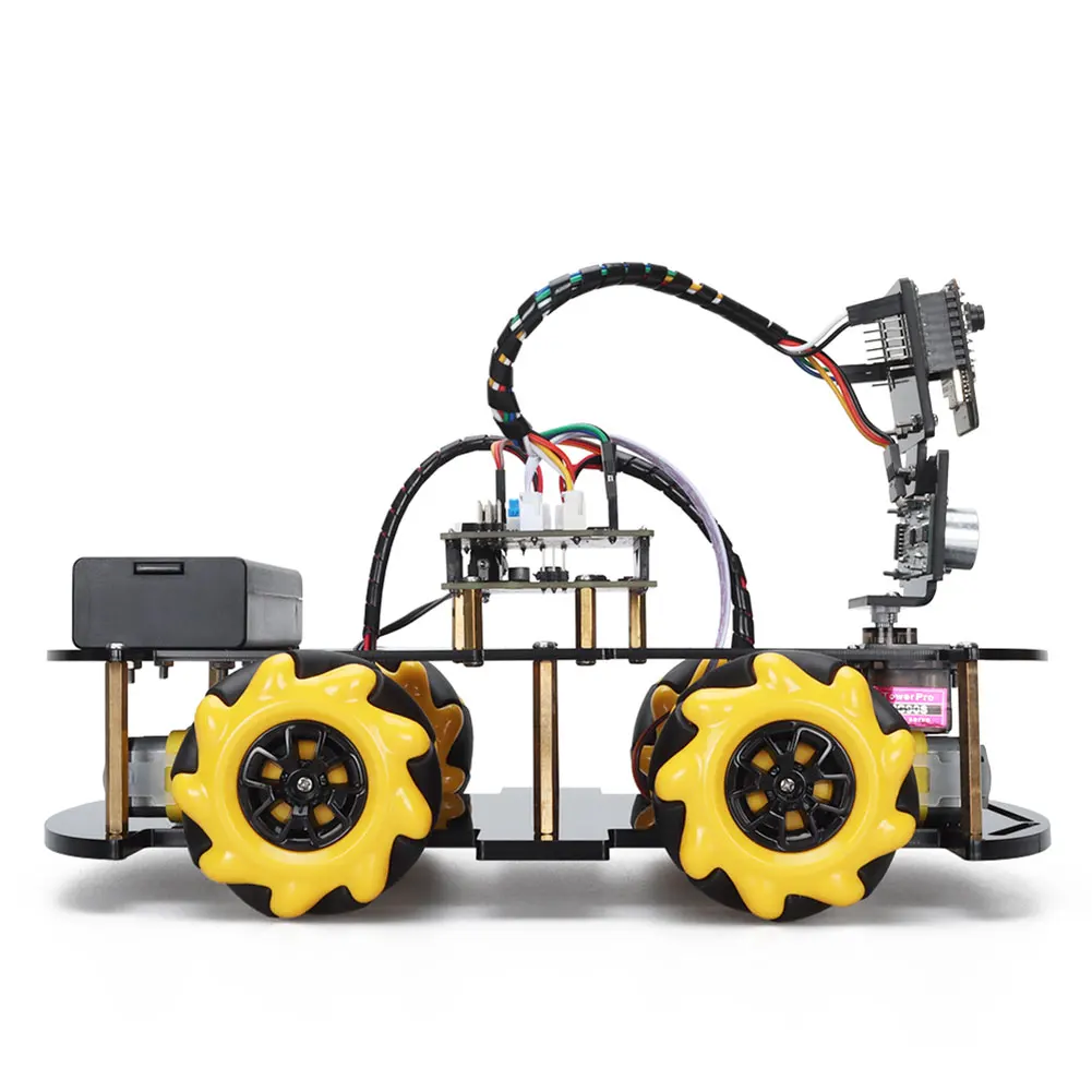 특징: 1. 다기능: 이 스마트 로봇 카 키트는 다양한 이동 옵션, 라인 추적 기능, 장애물 감지 및 팔로잉, 실시간 카메라 이미지 전송 및 편리한 WiFi 제어를 포함한 다양한 기능을 제공합니다. 2. 보통 조립 난이도: 회로 납땜이 필요 없고, 단자를 쉽게 연결할 수 있으며, 조립 설명서와 함께 명확하고 효율적인 완성이 가능합니다. 조립 공정은 회로 납땜이 필요 없이 사용자 친화적으로 만들어졌습니다. 4wd 스마트 로봇 카 키트는 쉽게 연결할 수있는 단자를 특징으로하며 부드럽고 효율적인 조립 경험을 보장하기 위해 포괄적 인 조립 매뉴얼이 제공됩니다. 3. 높은 강도와 확장 성: 내구성을 염두에두고 설계된 스마트 로봇 카 스타터 키트는 견고한 소재 브래킷, 강화 된 베이스 플레이트 및 고품질 무 방향 휠을 특징으로합니다. 또한 추가 센서 및 모듈을 연결하기 위한 충분한 인터페이스를 제공하여 추가 사용자 정의 및 확장을 허용합니다. 4. DIY에 이상적: 개인화 및 개선을 장려하여 사용자가 선호도에 따라 기능 및 디자인 모양을 추가하여 창의성과 상상력을 키울 수 있습니다. DIY에 중점을 두어 사용자가 자신의 취향에 따라 로봇을 사용자 정의하고 개선하도록 권장합니다. 새로운 기능을 추가하거나 독특한 외관을 디자인하든, 이 프로그래밍 가능한 DIY 스타터 키트는 사용자가 창의력과 상상력을 발휘할 수 있도록 지원합니다. 5. 혁신적인 기능: C 언어로 작성된 Arduino 코드를 활용하고 Esp32 캠 모듈을 Arduino 용과 통합함으로써이 제품은 다기능 WiFi 제어를 가능하게합니다. 사용자는 로봇의 혁신적인 기능을 활용하여 무선으로 로봇을 쉽게 작동 및 제어할 수 있습니다. 사양: 원산지: 중국 본토 유형: 논리 IC 조건: 신규 신청서: 전기 장난감 모델 번호: 스마트 로봇 자동차 키트 기능: 카메라 기능, 초음파 장애물 회피, 추적 기능, WIFI 제어 특징: UNO 메인 컨트롤 보드, 경량 구조, 메카 넘 휠 다 방향 운동 무게: 970g 크기: 282x163x7 1MM/11.1x6.42x2.8inch 참고: 이 제품에는 기본적으로 배터리가 제공되지 않습니다. 배터리가 필요하면 직접 구입하십시오. 적용 가능한 배터리 모델: 18650 참고: