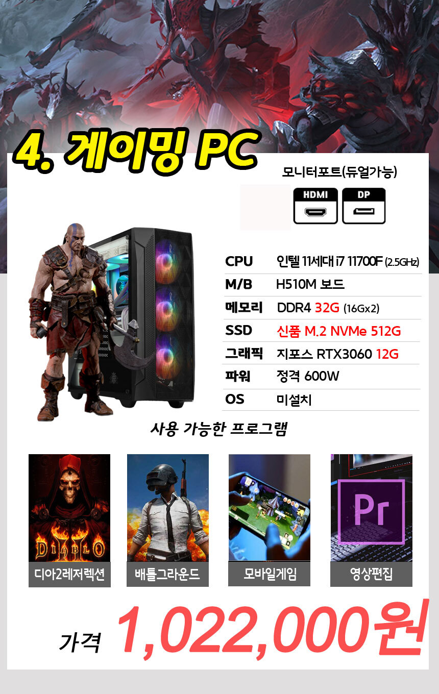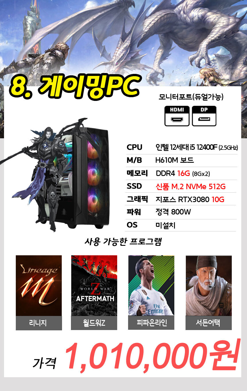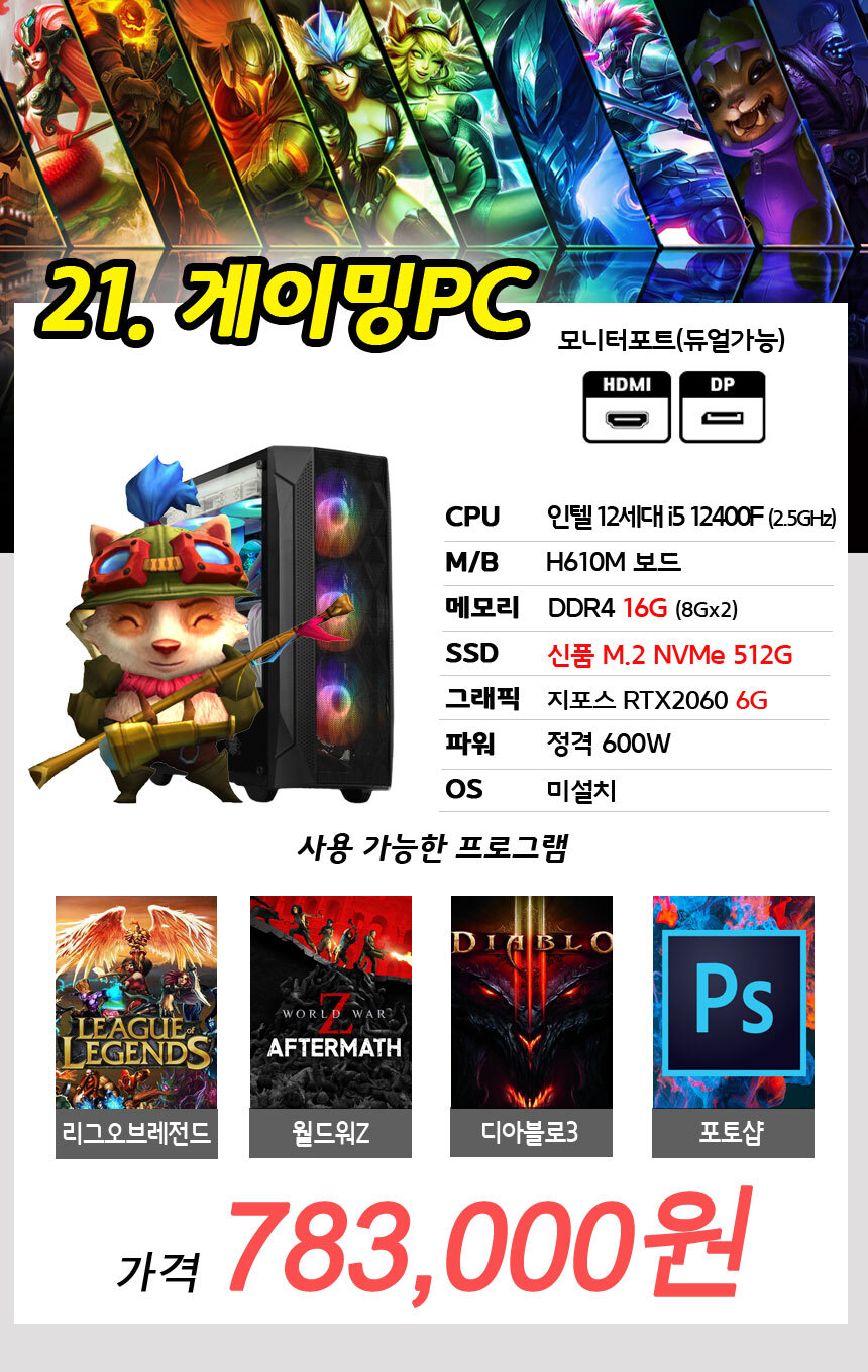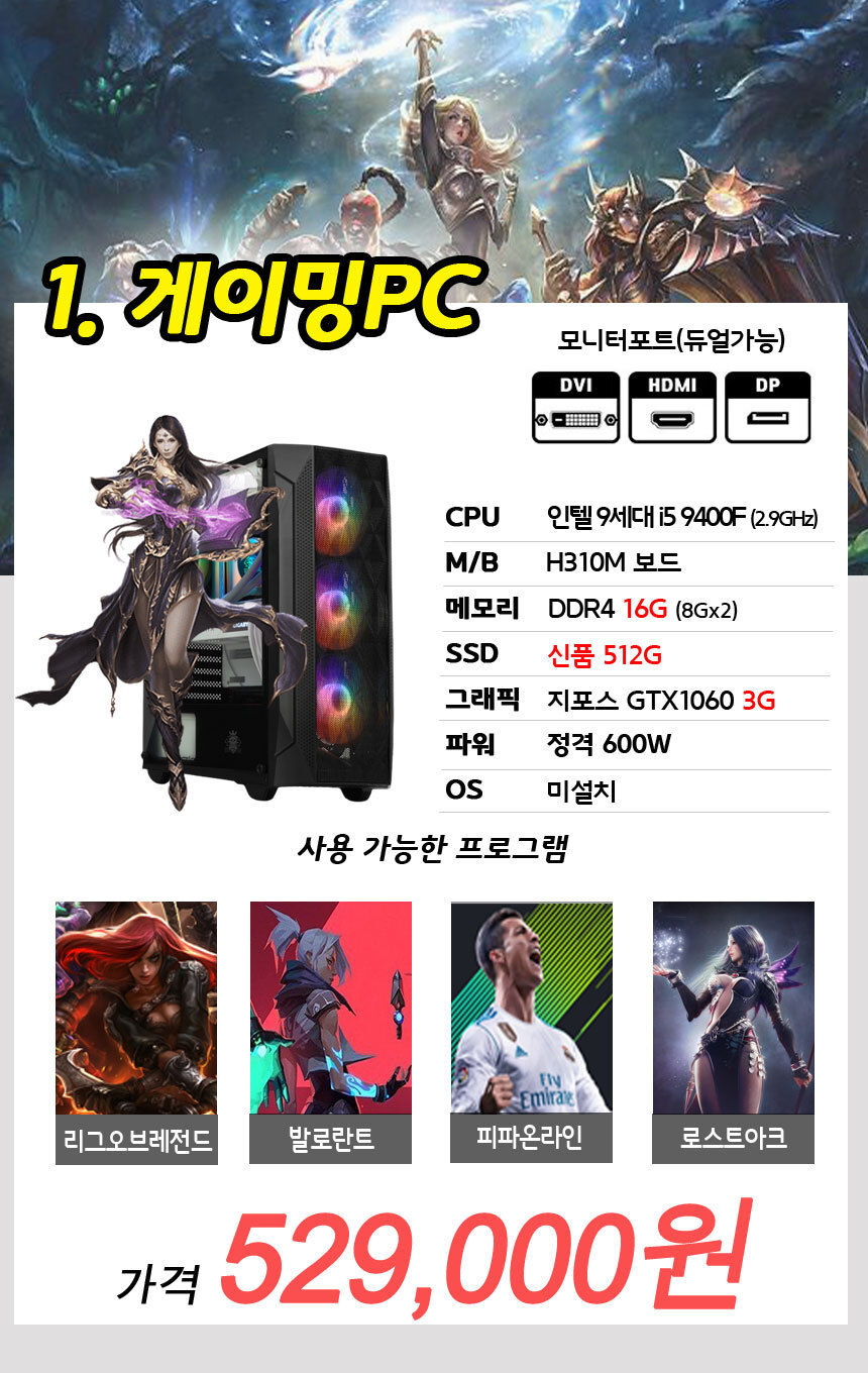 게이밍PC 인텔 고사양 게임용 본체 조립컴퓨터 중고컴퓨터 조립컴퓨터 멀티탭/스피커/패드 증정
