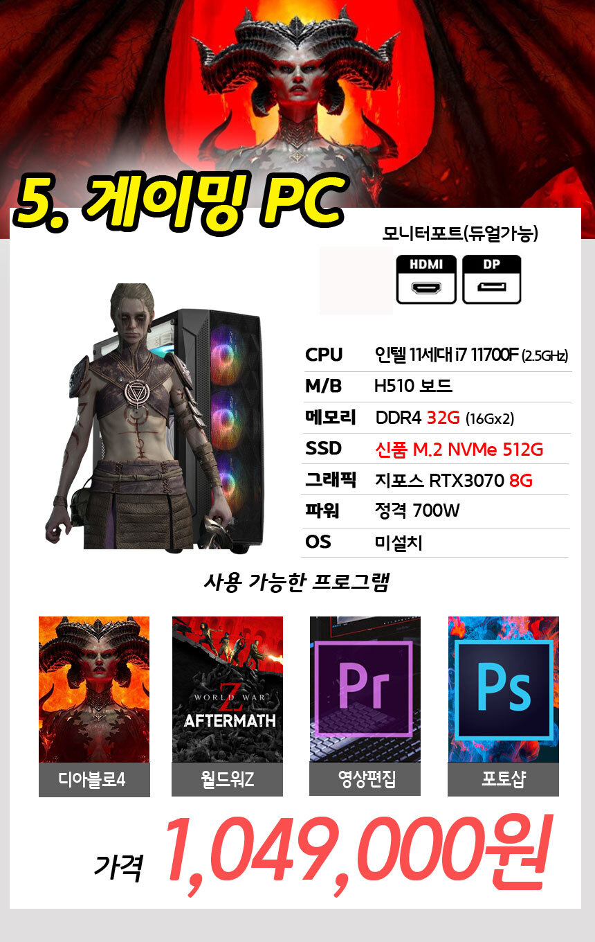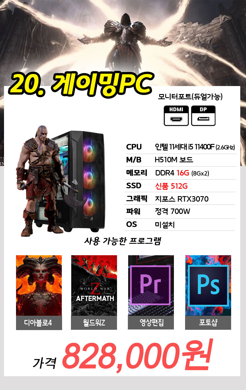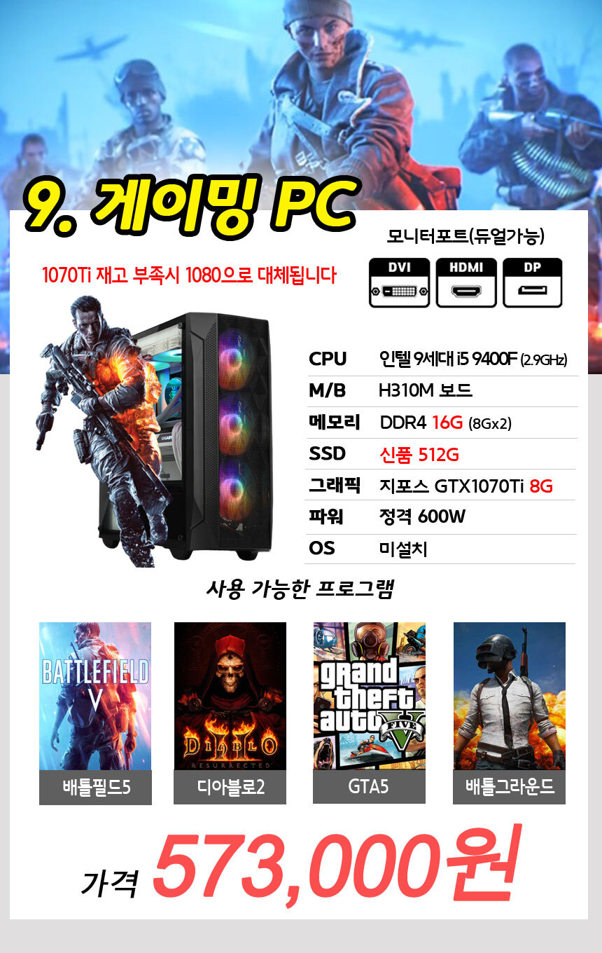 게이밍PC 인텔 고사양 게임용 본체 조립컴퓨터 중고컴퓨터 조립컴퓨터 멀티탭/스피커/패드 증정