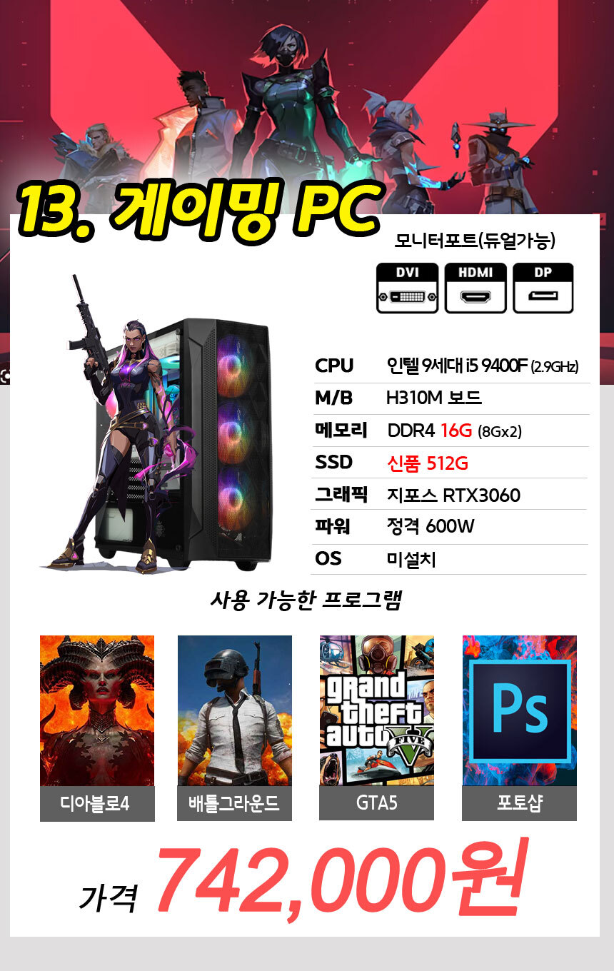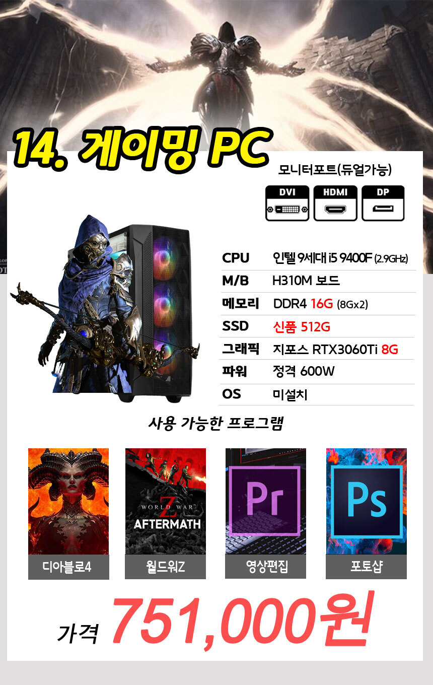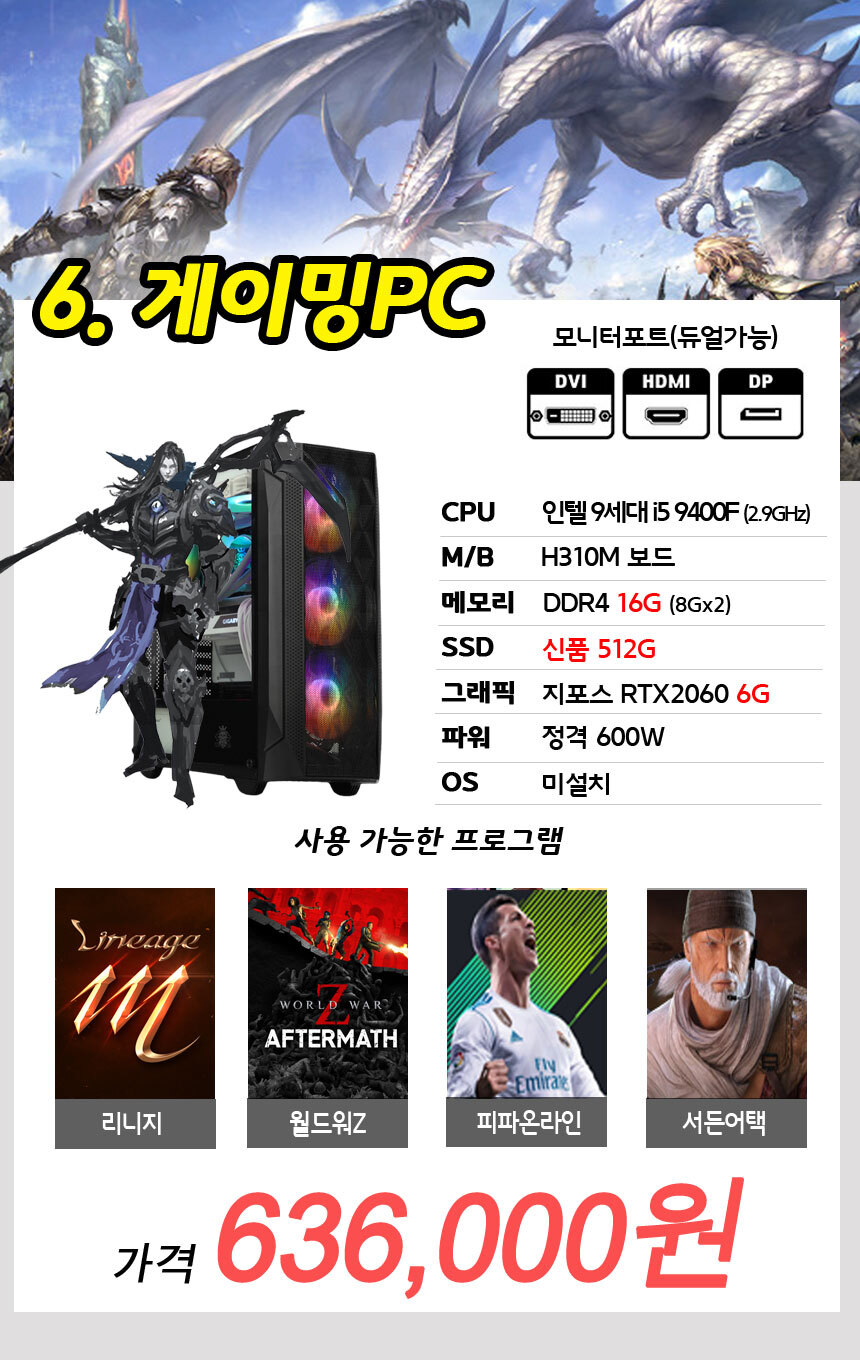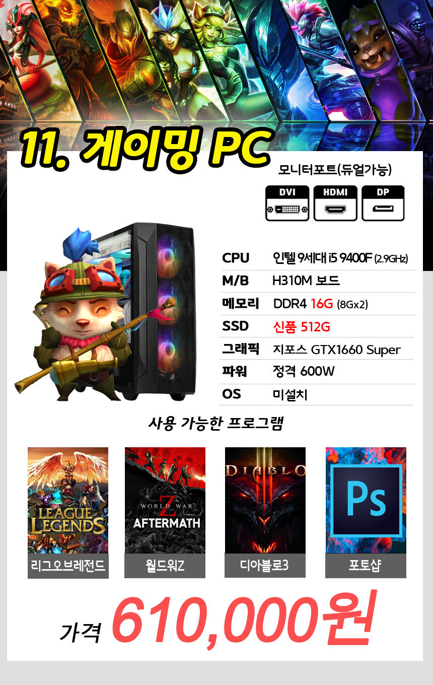 게이밍PC 인텔 고사양 게임용 본체 조립컴퓨터 중고컴퓨터 조립컴퓨터 멀티탭/스피커/패드 증정