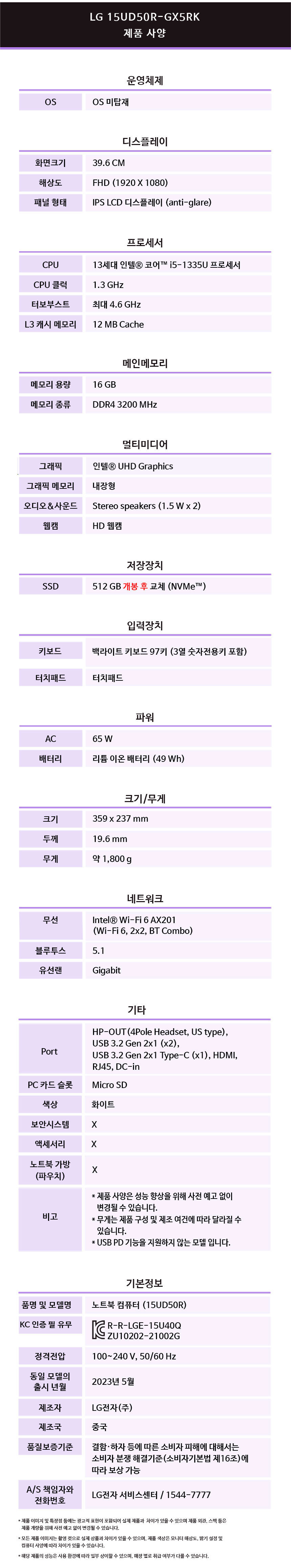 LG울트라 15UD50R-GX5RK 512GB 개봉교체(zoaa)