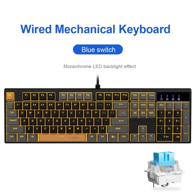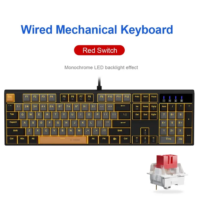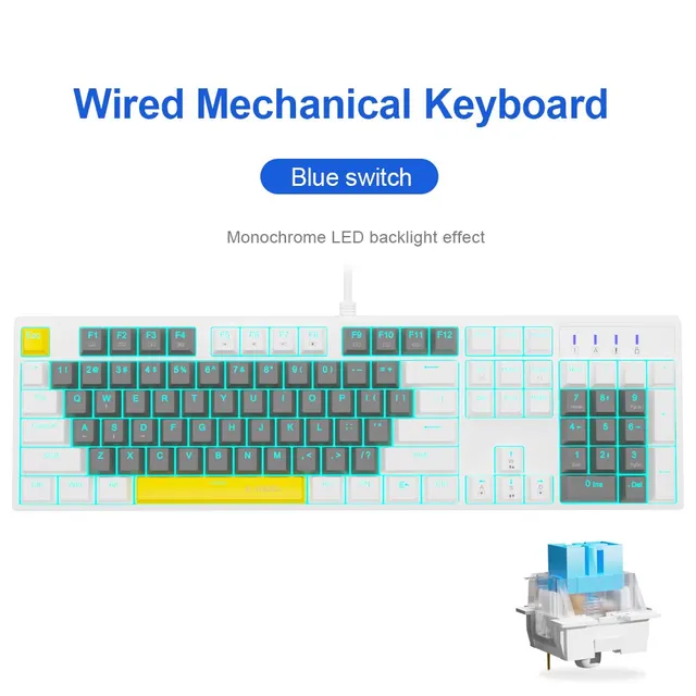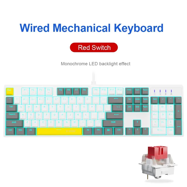 주요 세부 정보-104 키 기계식 게임 키보드는 모든 키 롤오버 방지 고스팅 모드, FN 키 단축키 활성화, 매크로 설정 사용 가능, 자신 만의 매크로 생성 및 타오르는 푸시 버튼 정확도 제공