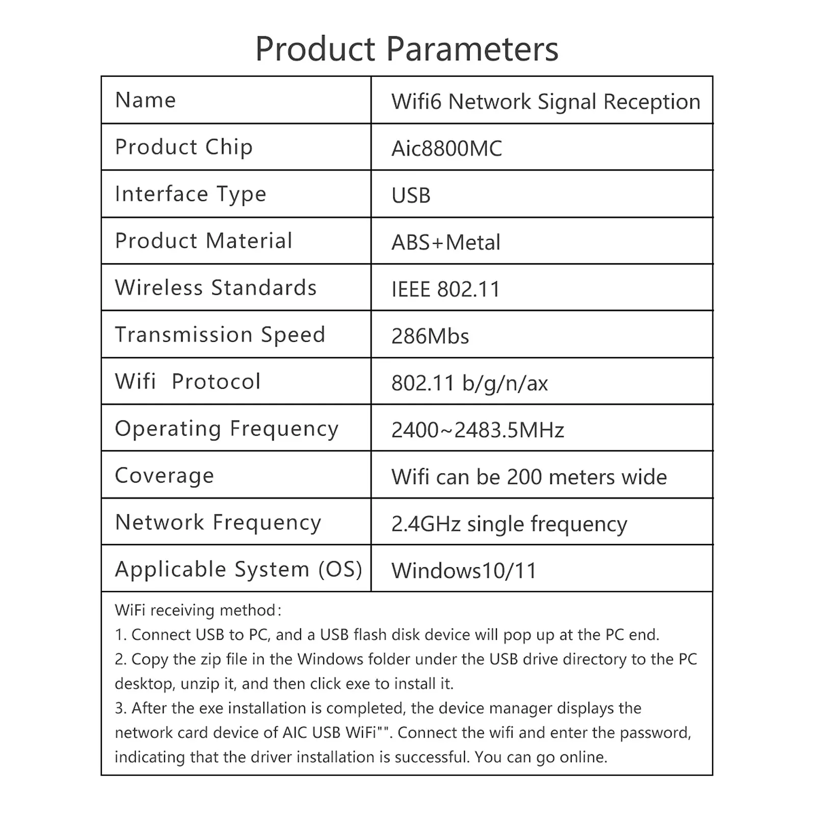 ▶최대 286Mbs 의 전송 속도로 인터넷 서핑 및 온라인 게임에 이상적입니다. Aic8800MC 칩, IEEE 802.11 무선 표준, 와이파이 지원 프로토콜 802.11 b/g/n/ax 장착.
