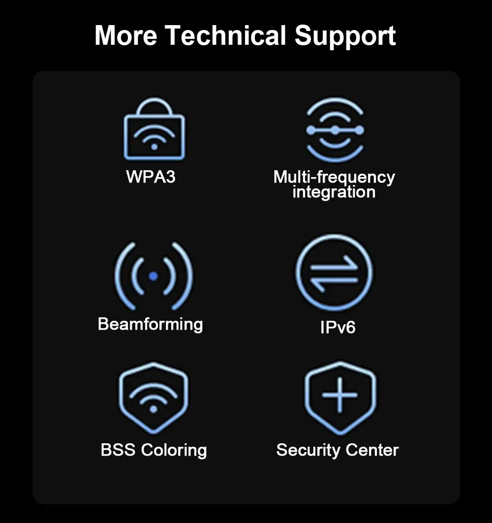 더 기술적인 지원:WPA3/다중 주파수 통합/Beamforming / IPv6 / BSS 색칠/보안 센터