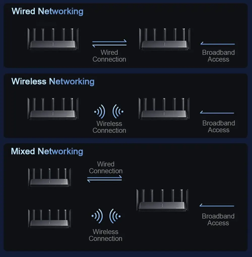 Xiaomi의 자체 개발 된 Mesh Network 기술 대형 가구에 대한 좋은 신호 범위, 걷는 동안 원활한 연결:큰 가정의 집 전체가 안정된 신호로 덮여 있으며 지능형 네트워킹은 생각보다 훨씬 쉽습니다.