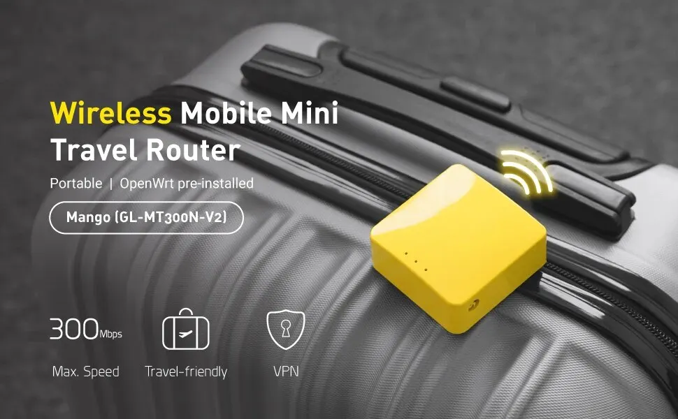 【GL.iNET GL-MT300N-V2 미니 스마트 라우터 (망고)-어디를 가든 개인 정보 보호! 】
