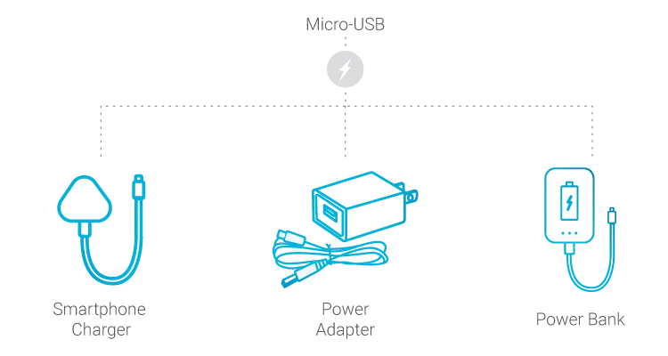 노트북 또는 보조베터리 또는 표준 5V/2A DC 어댑터 (별도 판매) 를 전원 공급 장치로 사용할 수 있습니다.