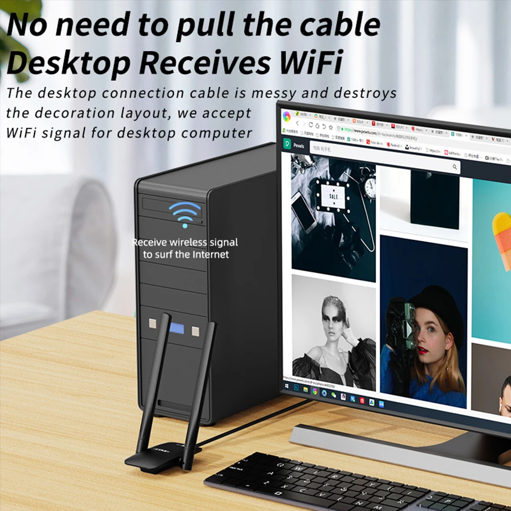 데스크탑 연결 케이블이 지저분하고 장식 레이아웃을 파괴하므로 데스크탑 컴퓨터의 WiFi 신호를 수락합니다.