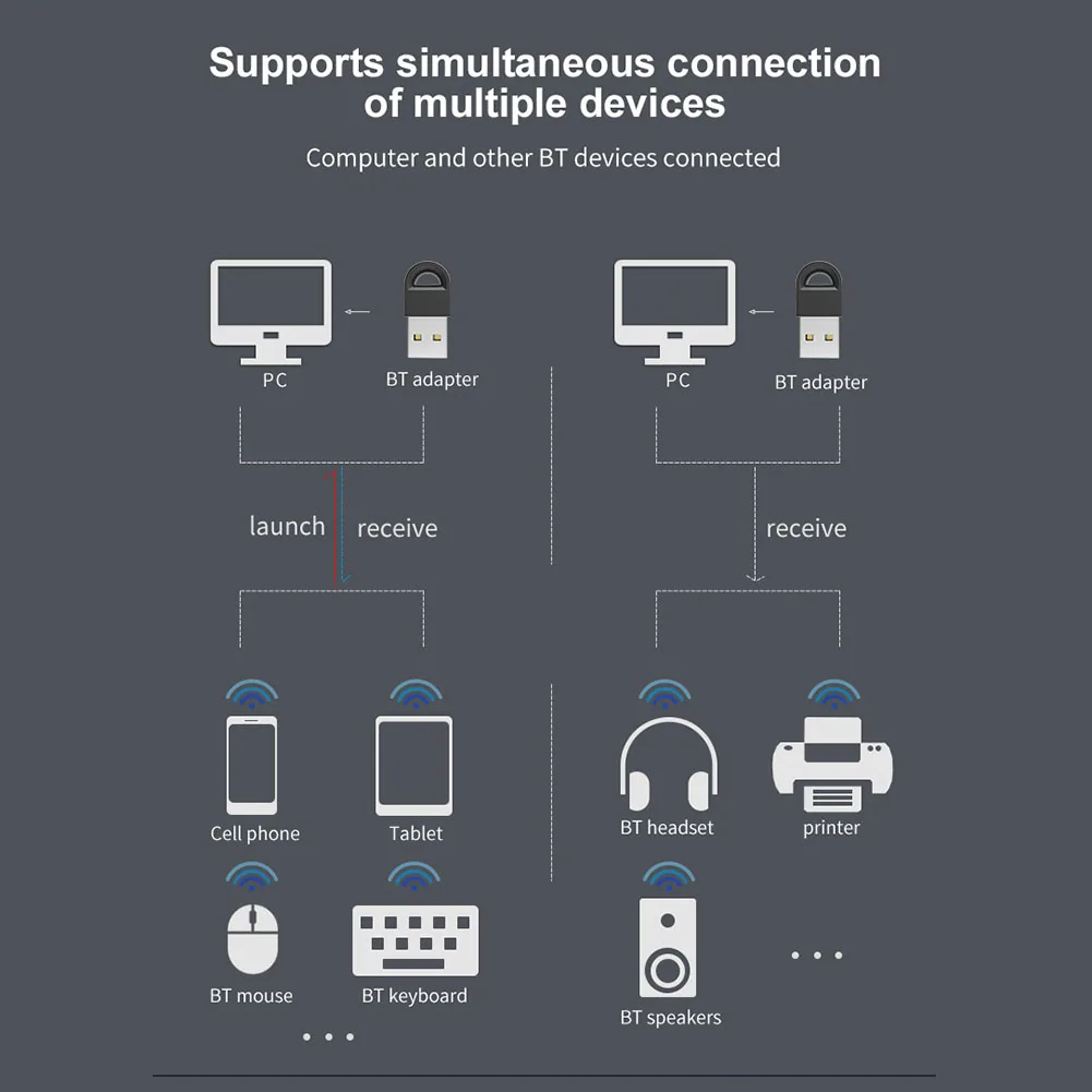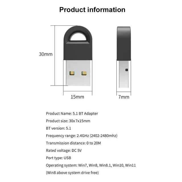 드라이브 없는 USB 어댑터 블루투스 호환 5.1 무선 다중 연결 지원 Win7/8/8. 마우스 키보드 헤드셋 용 1/10/11