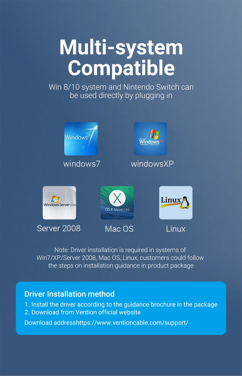 VENTION USB3.0 1000Mbps 이더넷 어댑터는 닌텐도 스위치/닌텐도 스위치 OLED와 완벽하게 호환됩니다. 그냥 연결하고 안정적인 온라인 게임을 경험하십시오.