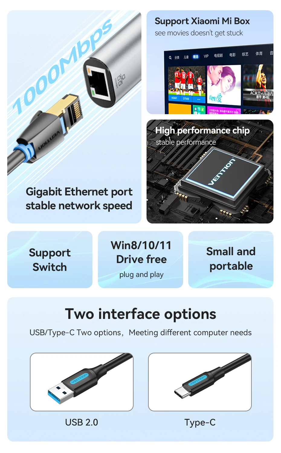 Vention 1000Mbps USB 3.0 이더넷 어댑터까지 가능