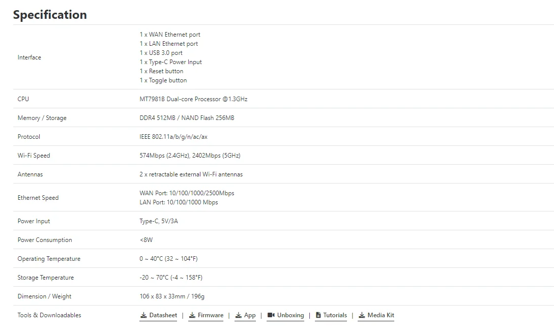 Beryl AX (GL-MT3000) 는 Wi-Fi 6 프로토콜을 사용하는 AX3000 포켓 크기의 여행용 라우터입니다. 이 제품은 GL-MT1300 (Beryl) 의 업그레이드 버전으로 MT7981B 1.3GHz 듀얼 코어 프로세서에서 작동하며 전체 Wi-Fi 속도의 두 배 이상을 제공합니다. Wi-Fi 사용이 많은 가족을 지원하도록 설계되었으며 여행용으로 컴팩트하게 설계되었습니다.