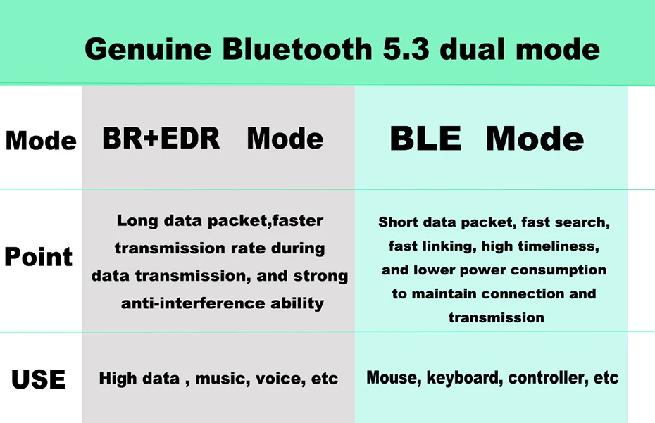 4, 블루투스 5.3 듀얼 모드 사양 (LMP 12.45 진정한 블루투스 5.3 표준) 을 지원합니다.