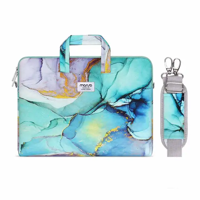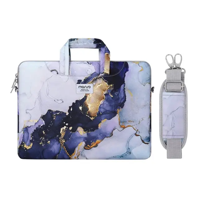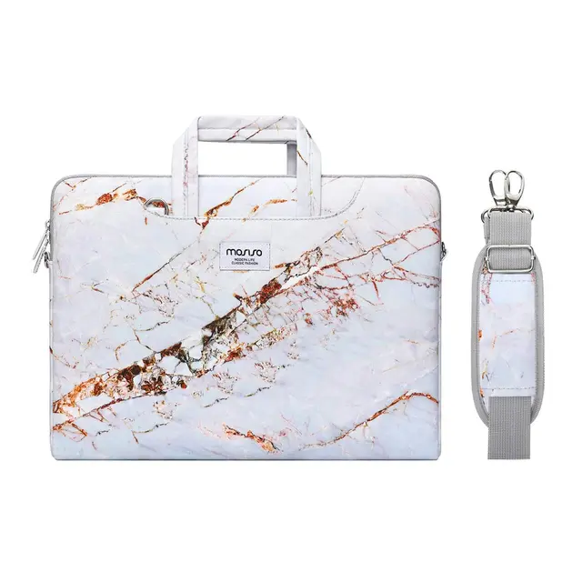 튼튼한 대리석 폴리 에스테르 소재는 물, 먼지, 먼지 및 흠집으로부터 장치를 보호합니다. 숄더 백의 상단 적재 지퍼로 부드러운 활공과 편리한 접근이 가능합니다.