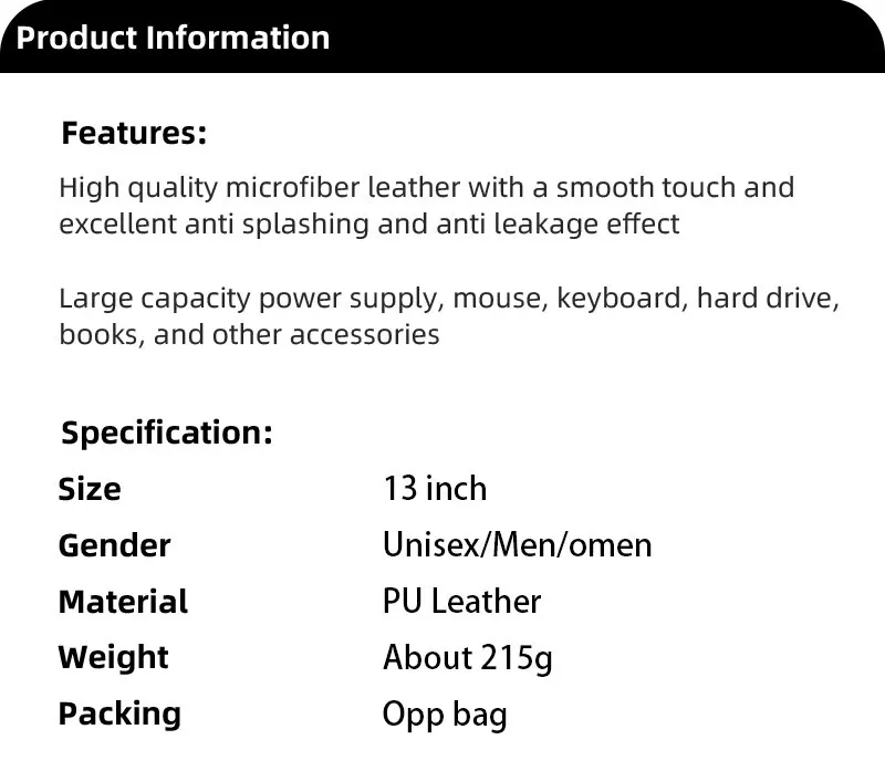 ? 솔리드 패턴 유형:이 노트북 가방의 견고한 패턴 유형은 노트북 휴대 요구에 세련미를 더합니다.