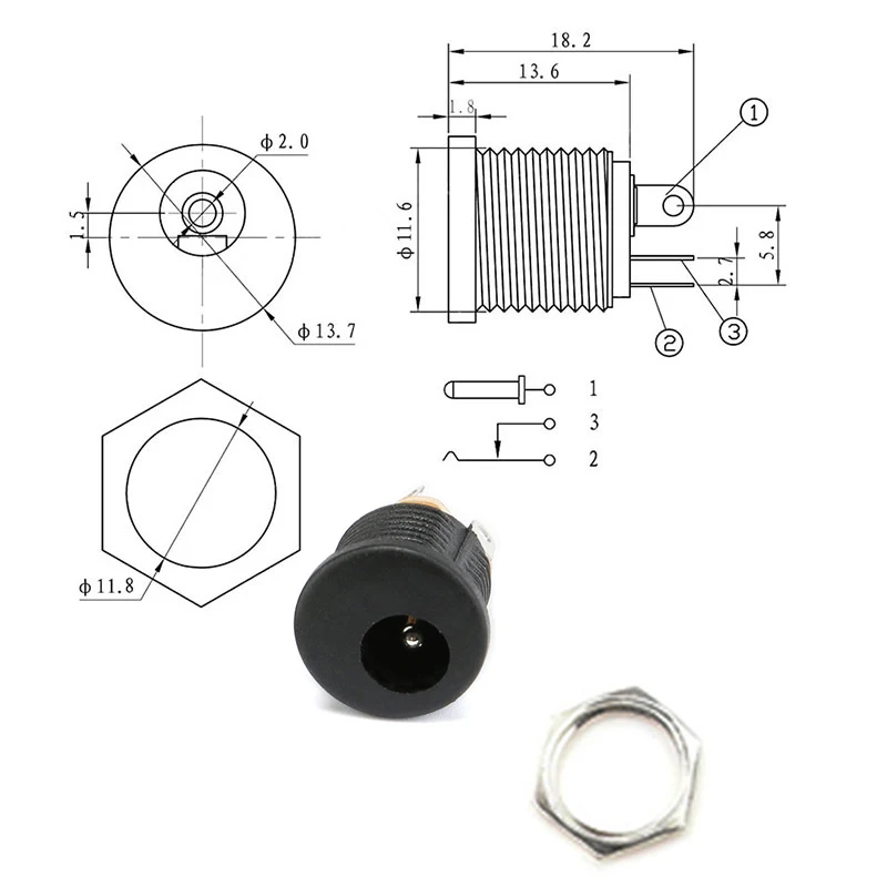 10 개 DC 커넥터 5.5x2.1mm 3.5x1.3mm DC 전원 플러그 남성 여성 잭 소켓 너트 패널 마운트 DC 전원 어댑터 커넥터 5.5*2.1