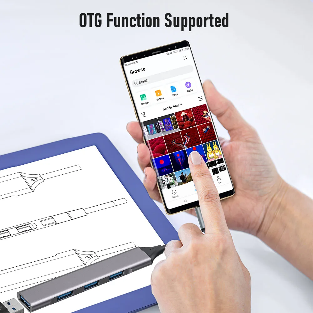 USB 허브 4-in-1 다기능 도킹 스테이션을 사용하면 노트북을 여러 액세서리 또는 외부 장치와 연결할 수 있습니다