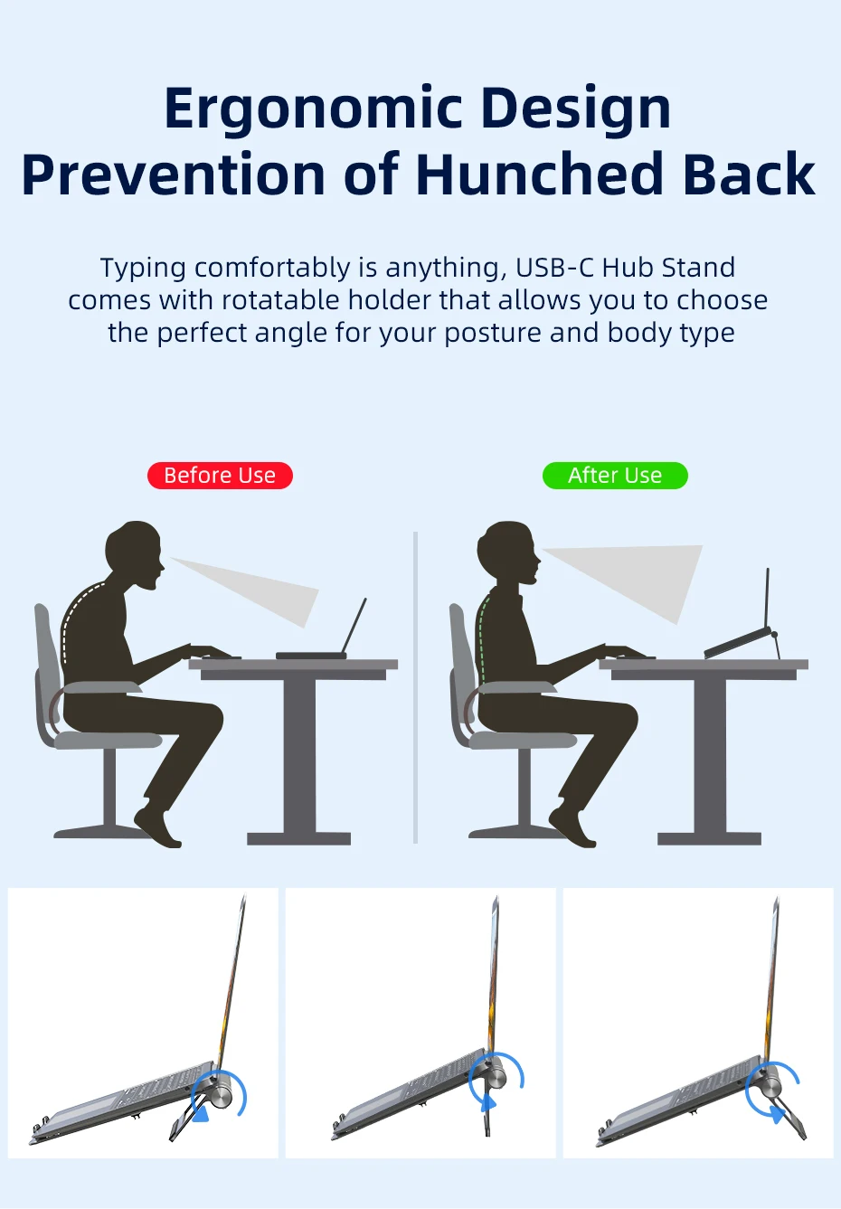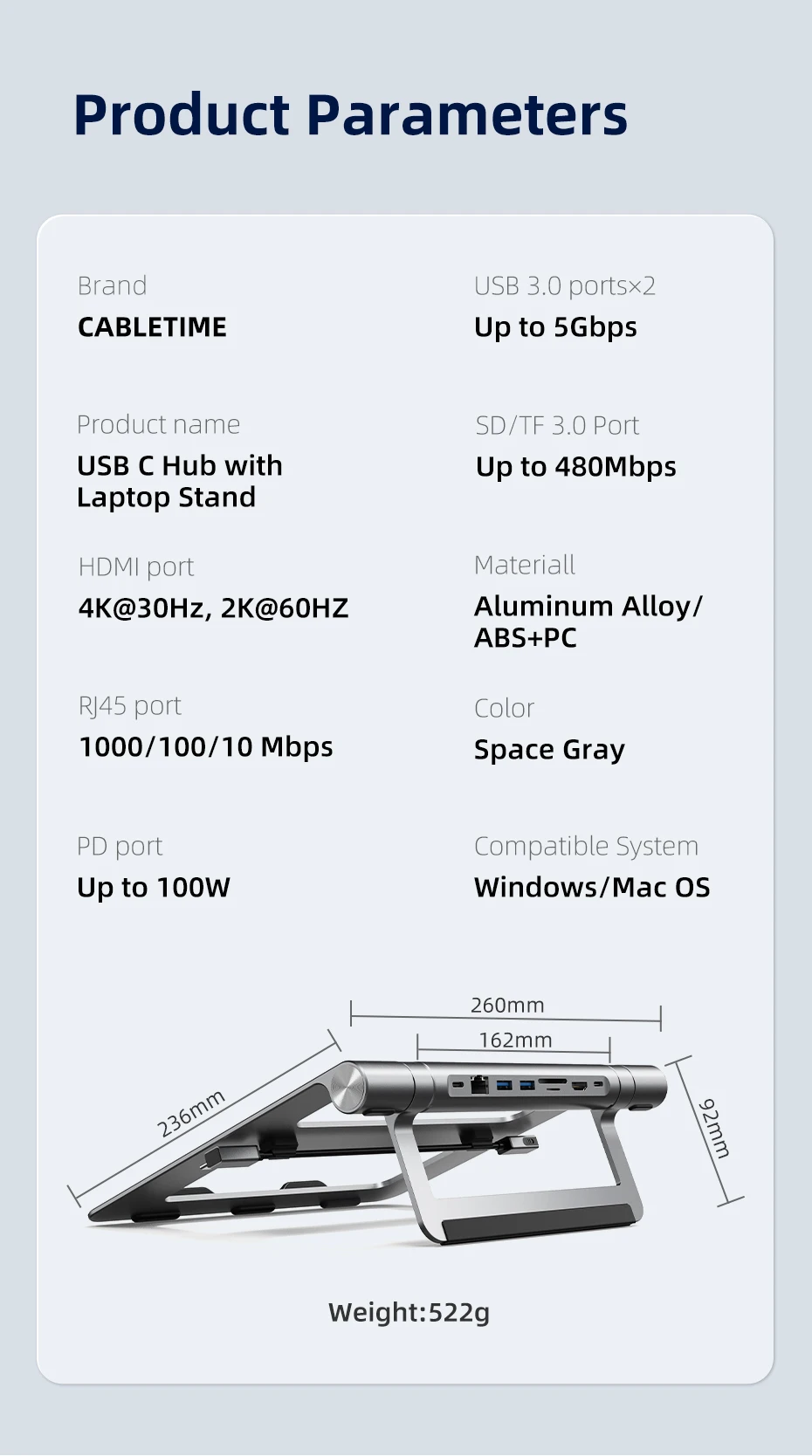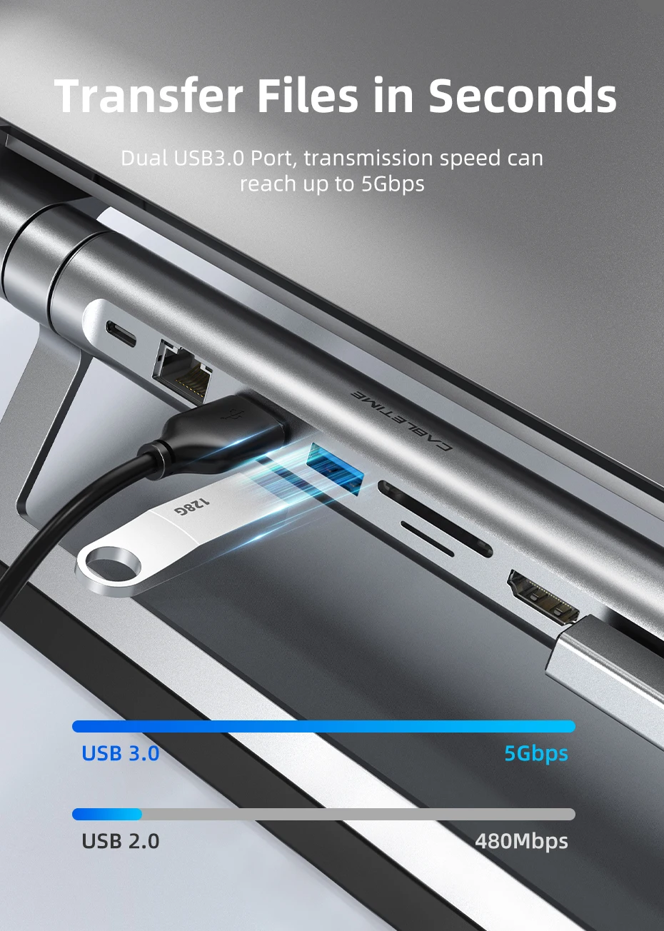 노트북 거치대 스탠드 받침대 휴대용 CABLETIME USB 허브 에어 노트북용 C-HDMI 4K 100W 충전 LAN SD 카드
