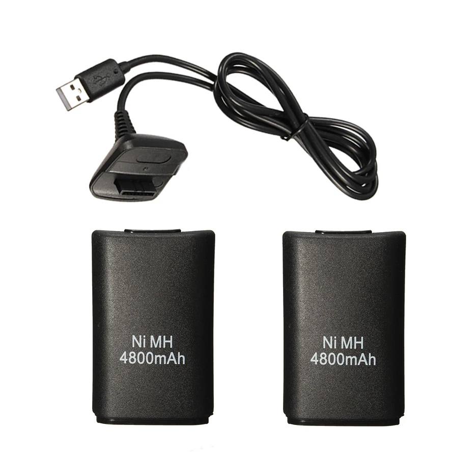 2PC 4800mAh 충전식 배터리 1 충전 케이블 Xbox 360 게임 패드 배터리 무선 컨트롤러 배터리 도매