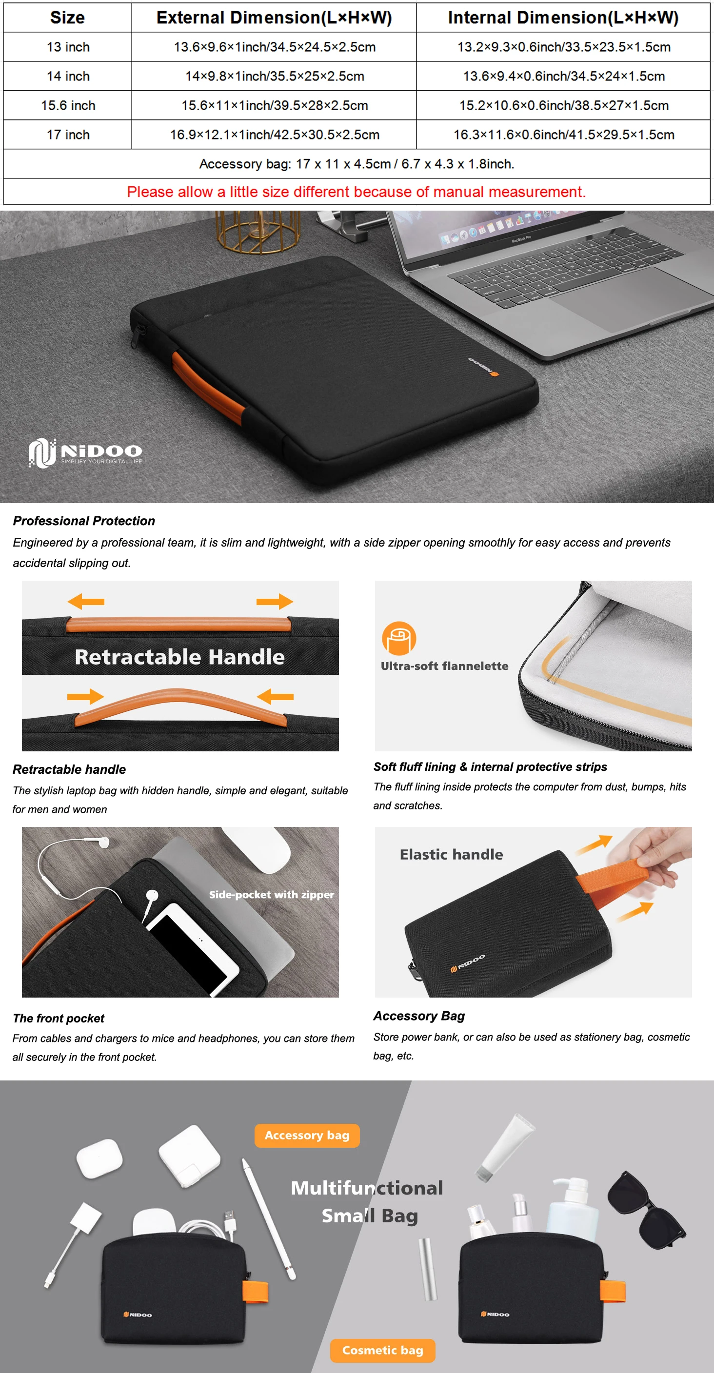 노트북 가방 케이스 NIDOO 13.3 14 인치 방수 맥북 호환 M1 에어 프로 13 15 핸드백 서류 액세서리 포함