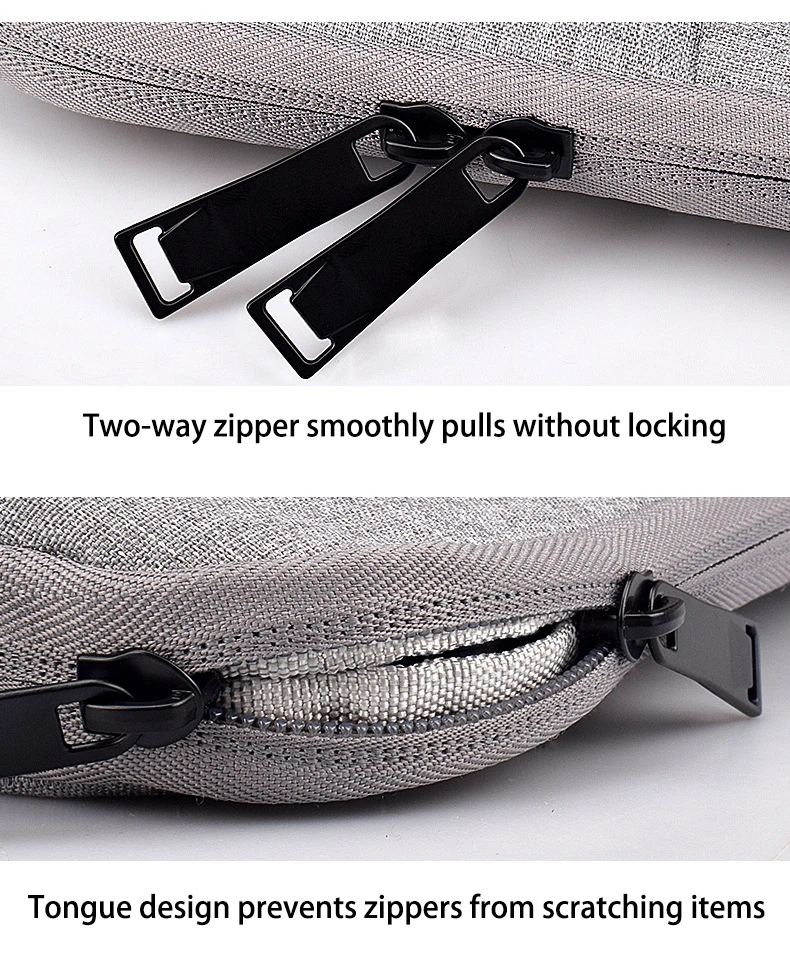 2. 발수 및 방습: 노트북 케이스는 방수 나일론 캔버스 패브릭으로 만들어져 물과 증기를 효과적으로 막습니다. 랩탑 컴퓨터와 액세서리가 물 또는 비에 젖는 것에 대해 걱정하지 마십시오! 그리고 비오는 날 만나도 안전하게 케이스 가지고 다니세요.