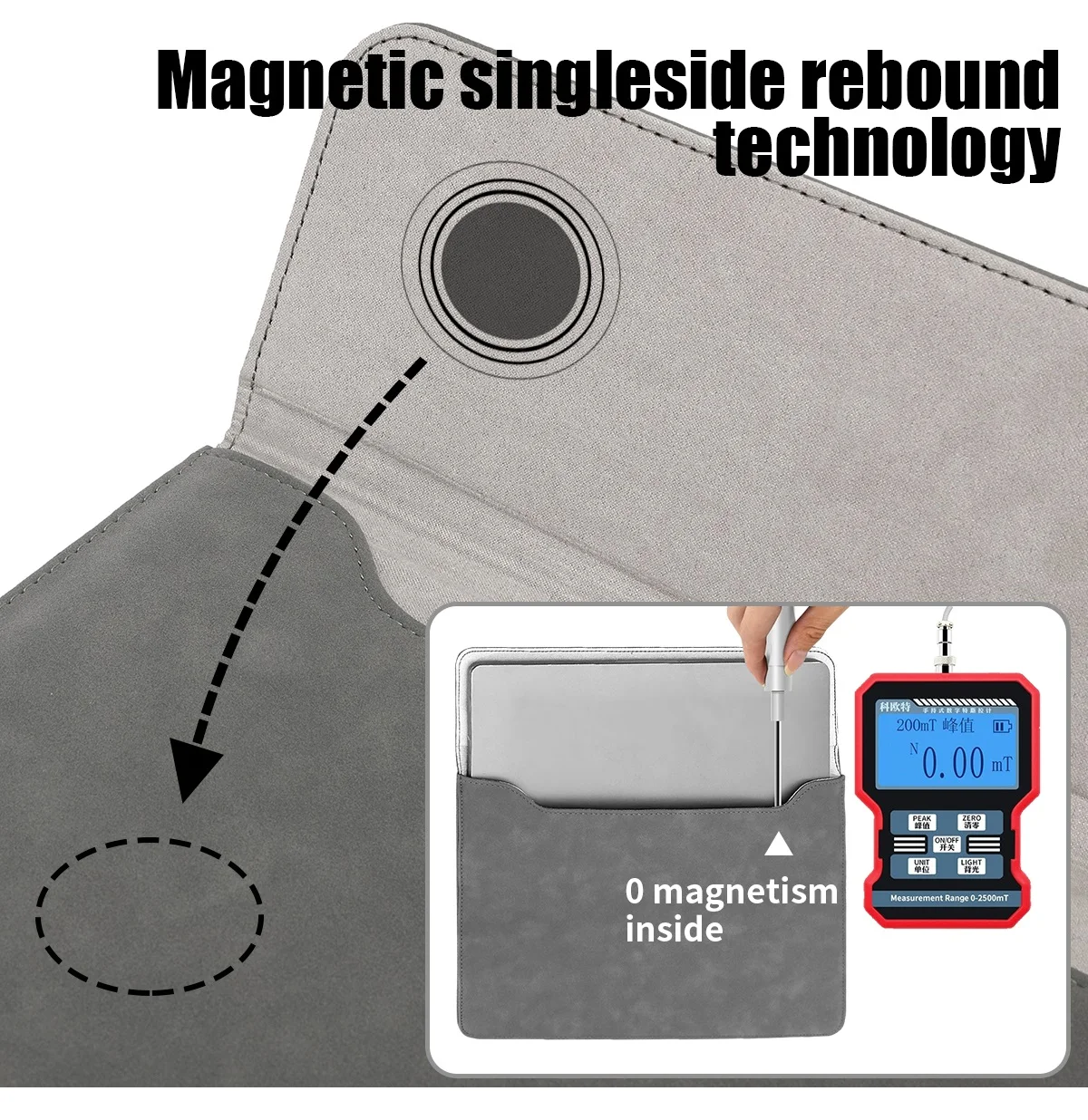 마그네틱 버클은 특수 처리되며 가방 내부는 비자성이므로 장치에 영향을 미치지 않습니다.