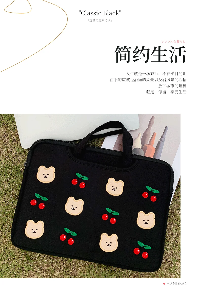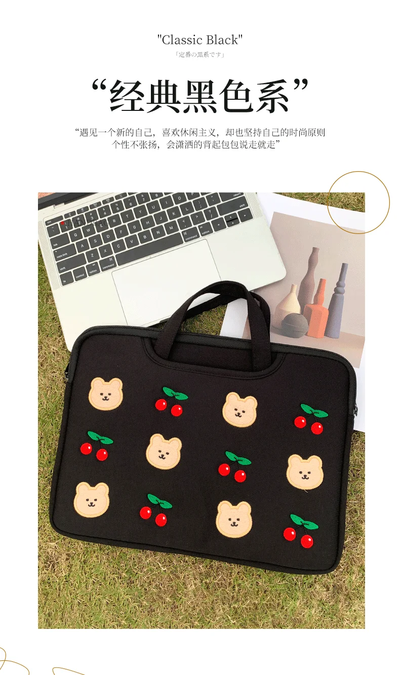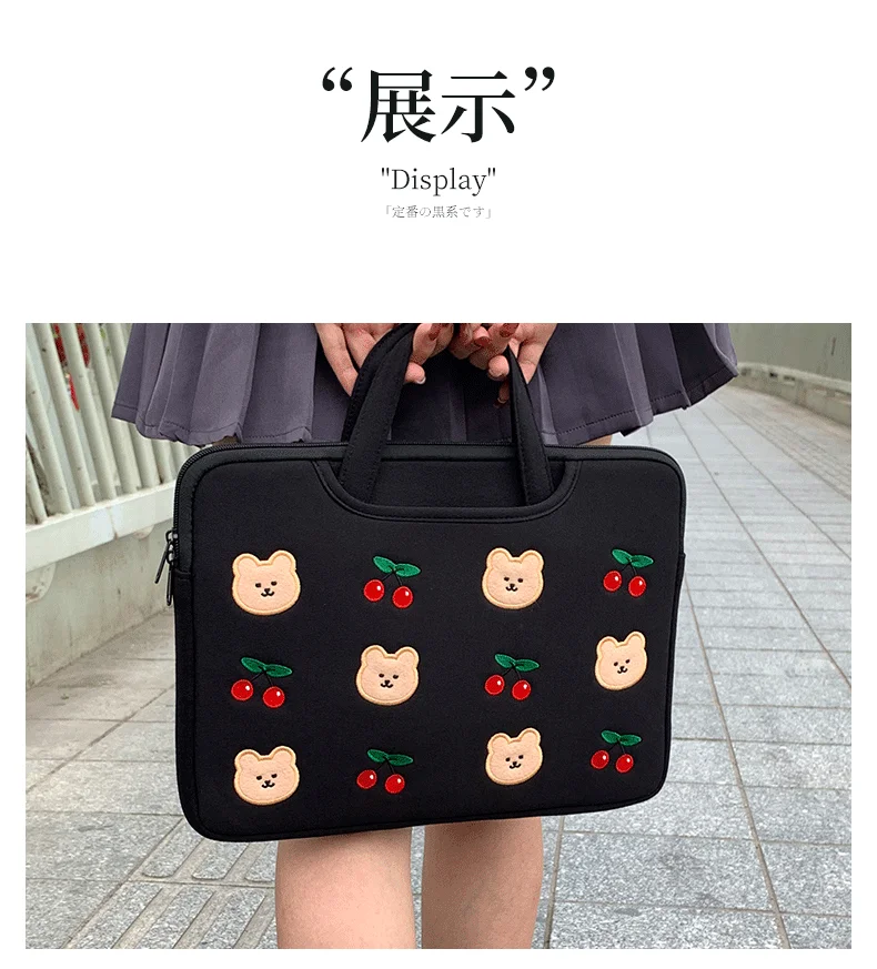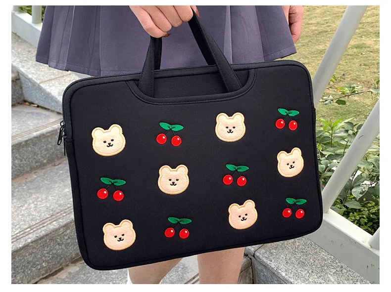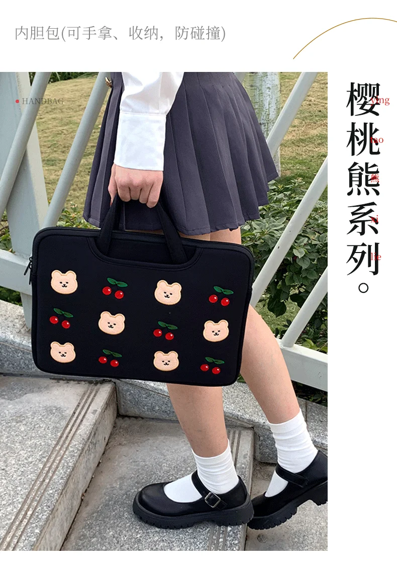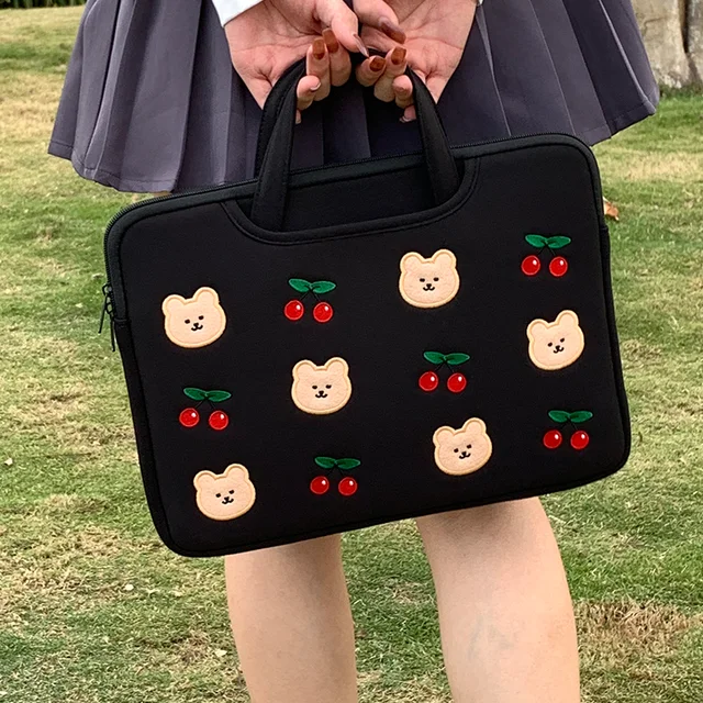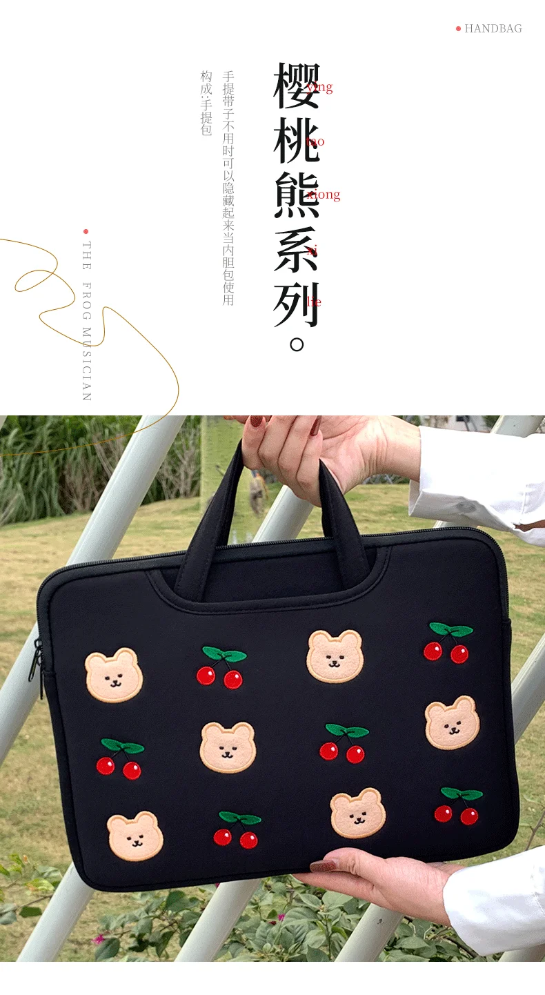 노트북 가방 케이스 귀여운 만화 곰 슬리브 맥북 호환 에어 13.6 프로 14 델 HP 레노버 핸드백용 13 13.3 1