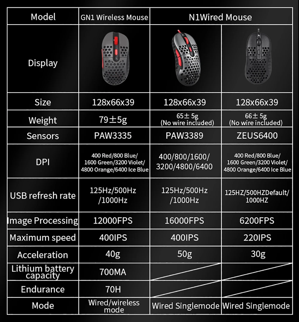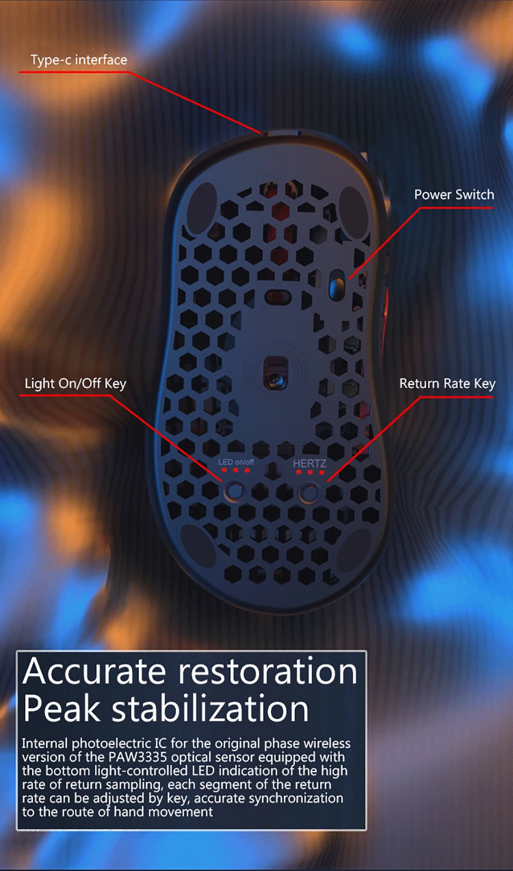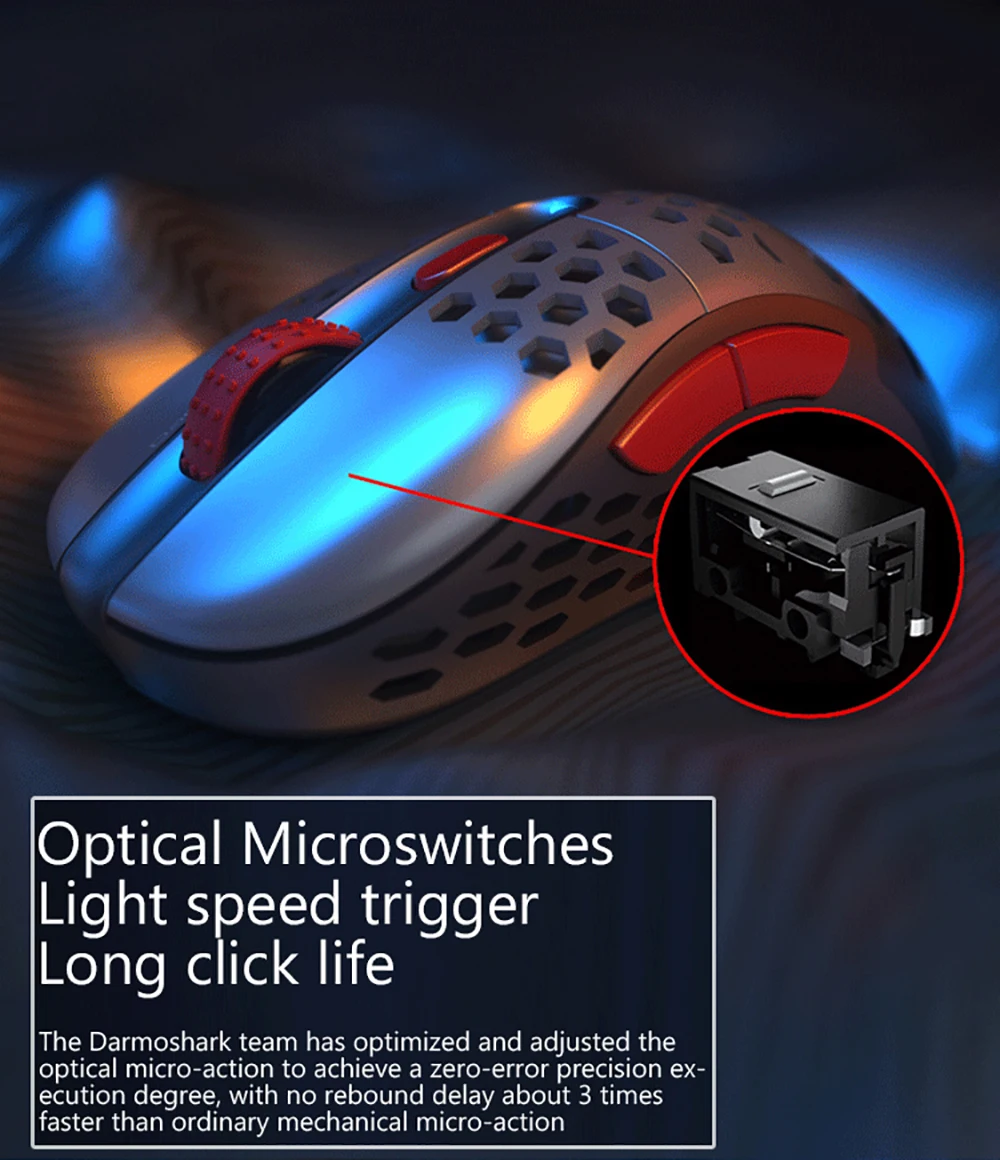【경량 허니컴 쉘 설계】 새로운 천공 하우징은 내구성이 뛰어나고 가벼워 지도록 설계되었으며, 2.29 온스 만큼 가벼워 장기간 사용하는 동안 손바닥 땀과 손목 피로를 줄이기에 완벽합니다. 명확한 목표, 더 나은 성능-더 오래.
