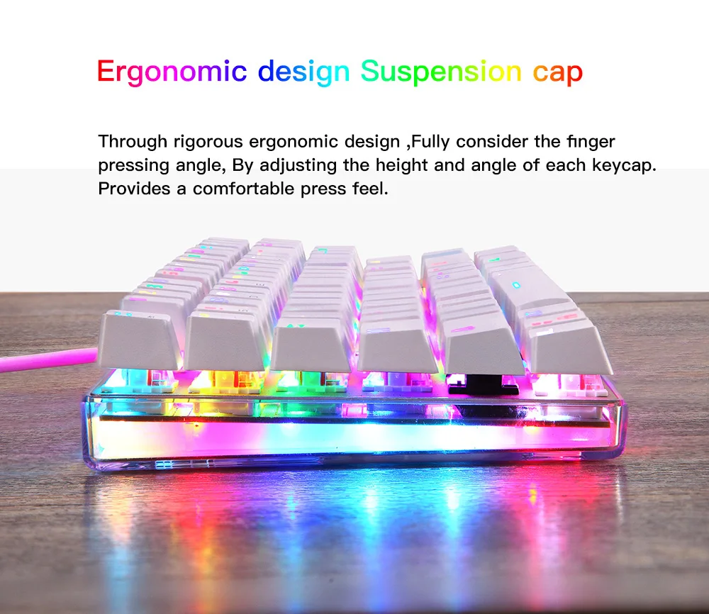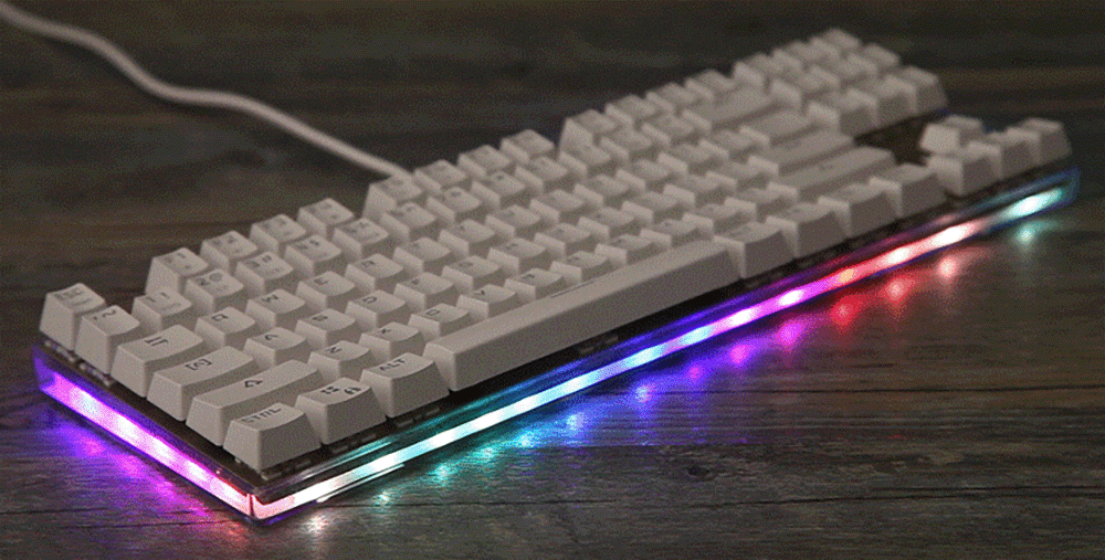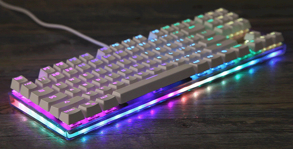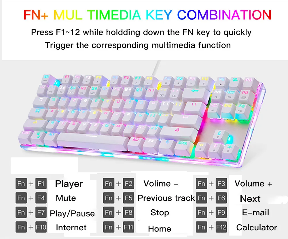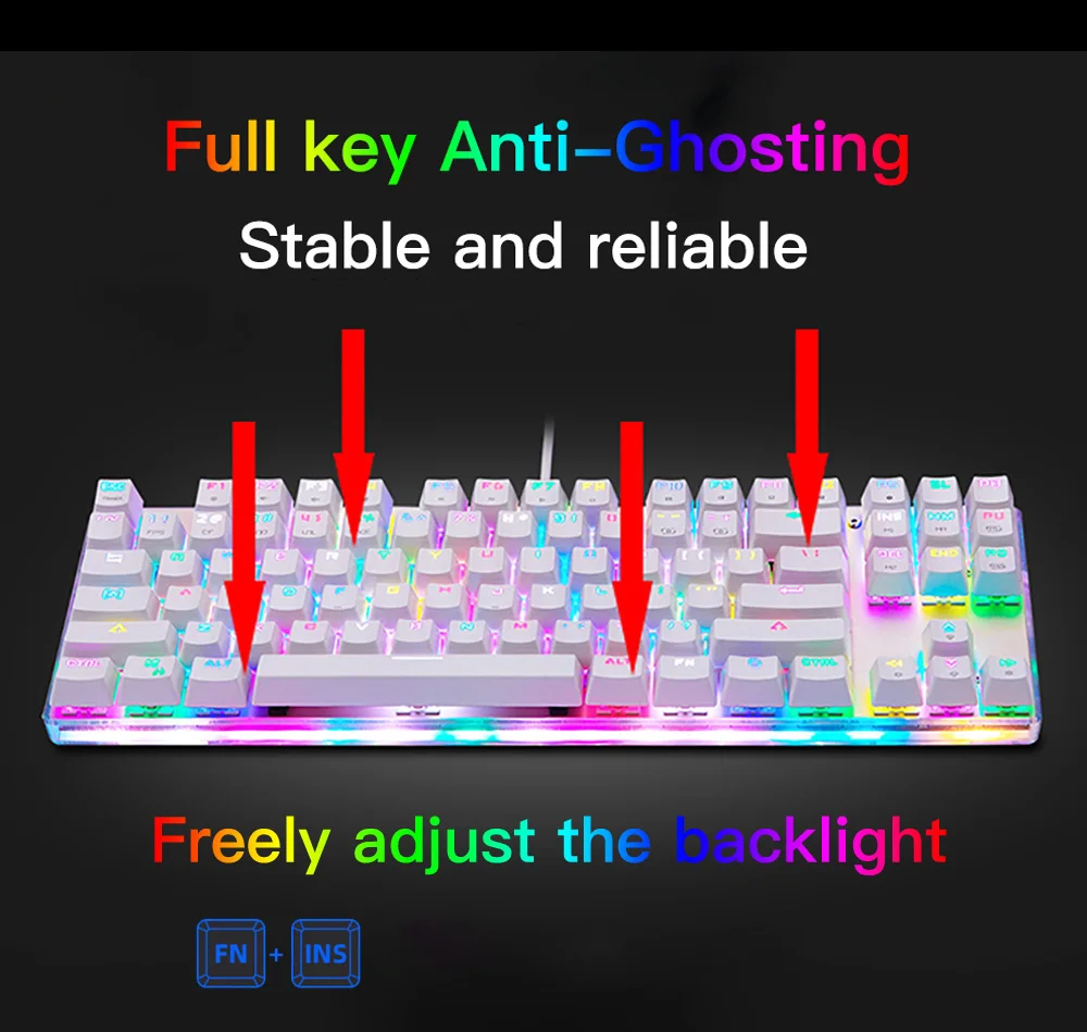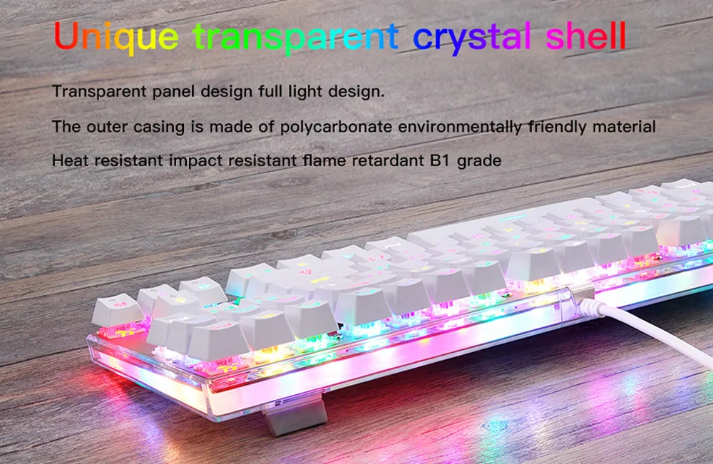 PC 게임용 RGB 백라이트 블루 스위치가있는 Motospeed K87S ABS USB2.0 유선 기계식 키보드 및 1.8m 케이블로 흰색 연결