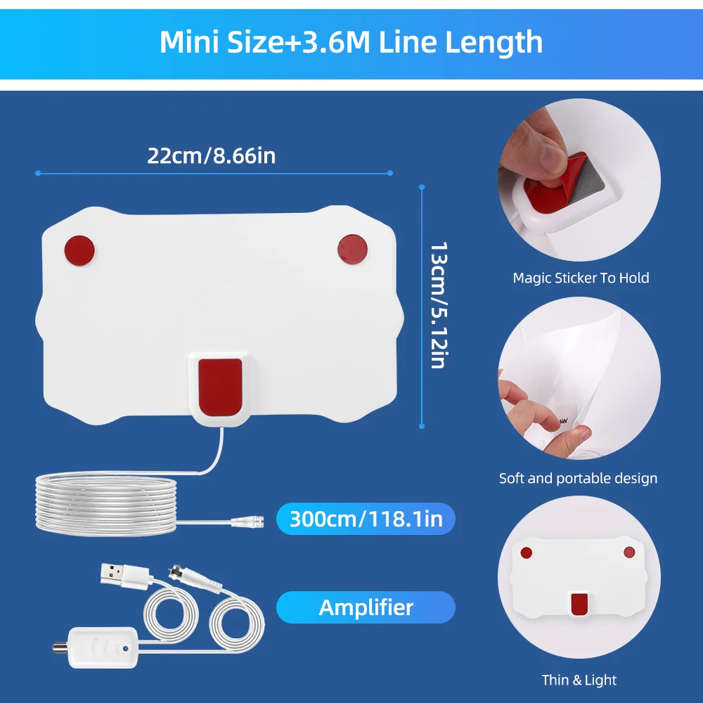 안테나의 초박형 디자인은 벽이나 창문에 부착하면서 낮은 프로파일을 유지한다는 것을 의미합니다. 이것은 엔터테인먼트 공간을 매끄럽고 깔끔하게 유지하는 데 도움이됩니다.